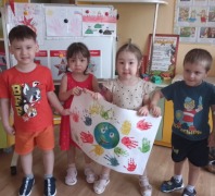 свои знания закрепили на занятии «Берегите первоцветы», «Ладошки - цветы на планете». Рисовали цветы в нетрадиционной форме - печатание ладошкой. С помощью ватных дисков получилась чудесная коллективная работа. Такие мероприятия помогают ребятам приобрести новые знания и являются важным средством воспитания экологической культуры дошкольников.