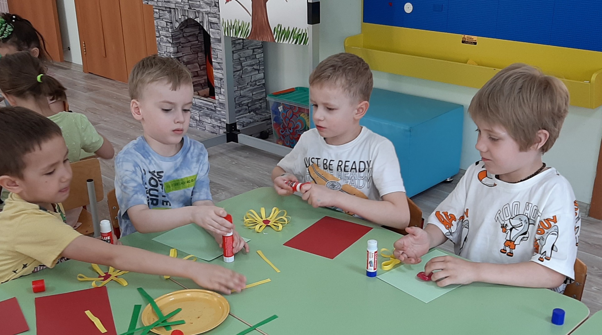 композиции умение работать аккуратно. В завершении дня в сюжетно-ролевой игре «Магазин подарков» развивали умение обращать внимание, на то чем интересуются их товарищи, что любят.