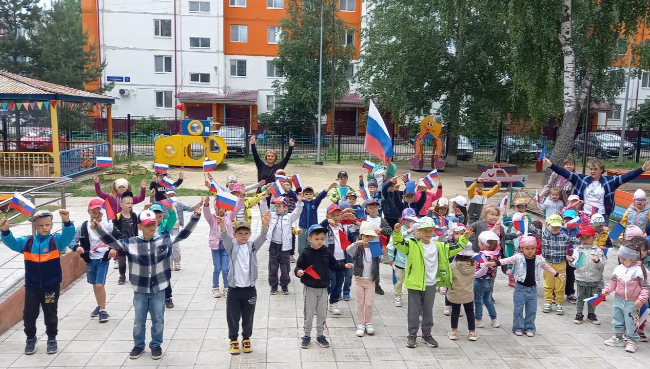 Дети отражали свои впечатления в рисунках и творческих аппликациях. Накануне Дня России в каждой группе прошли музыкально- спортивные праздники, которые были открыты праздничным флешмобом «Родина моя милая».