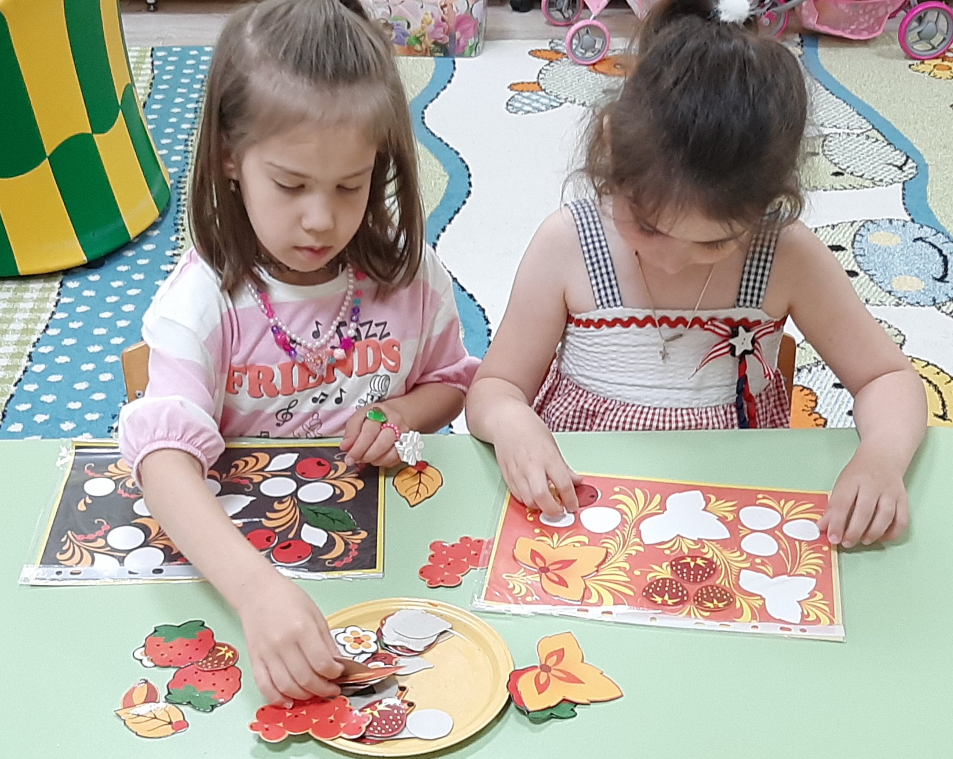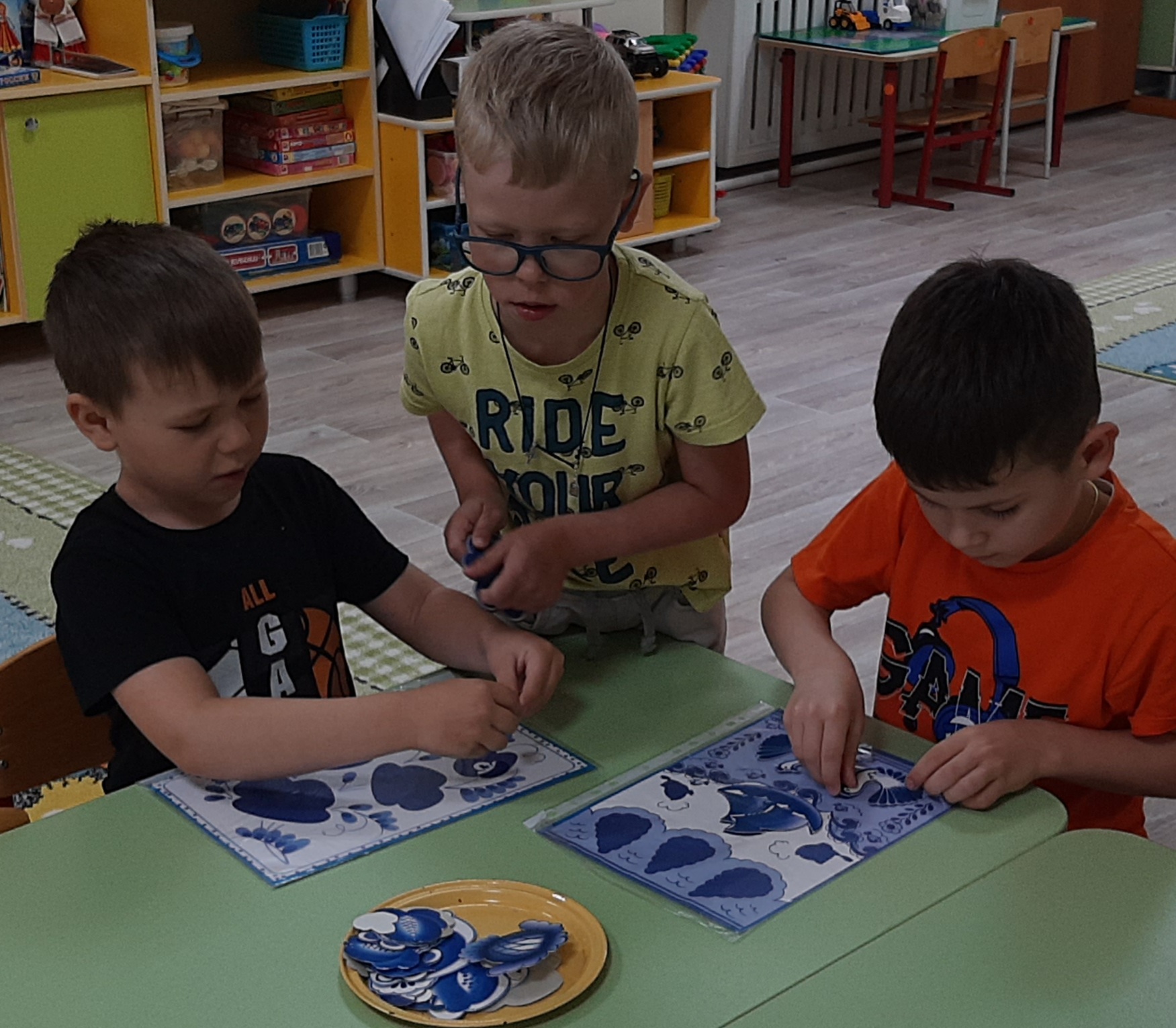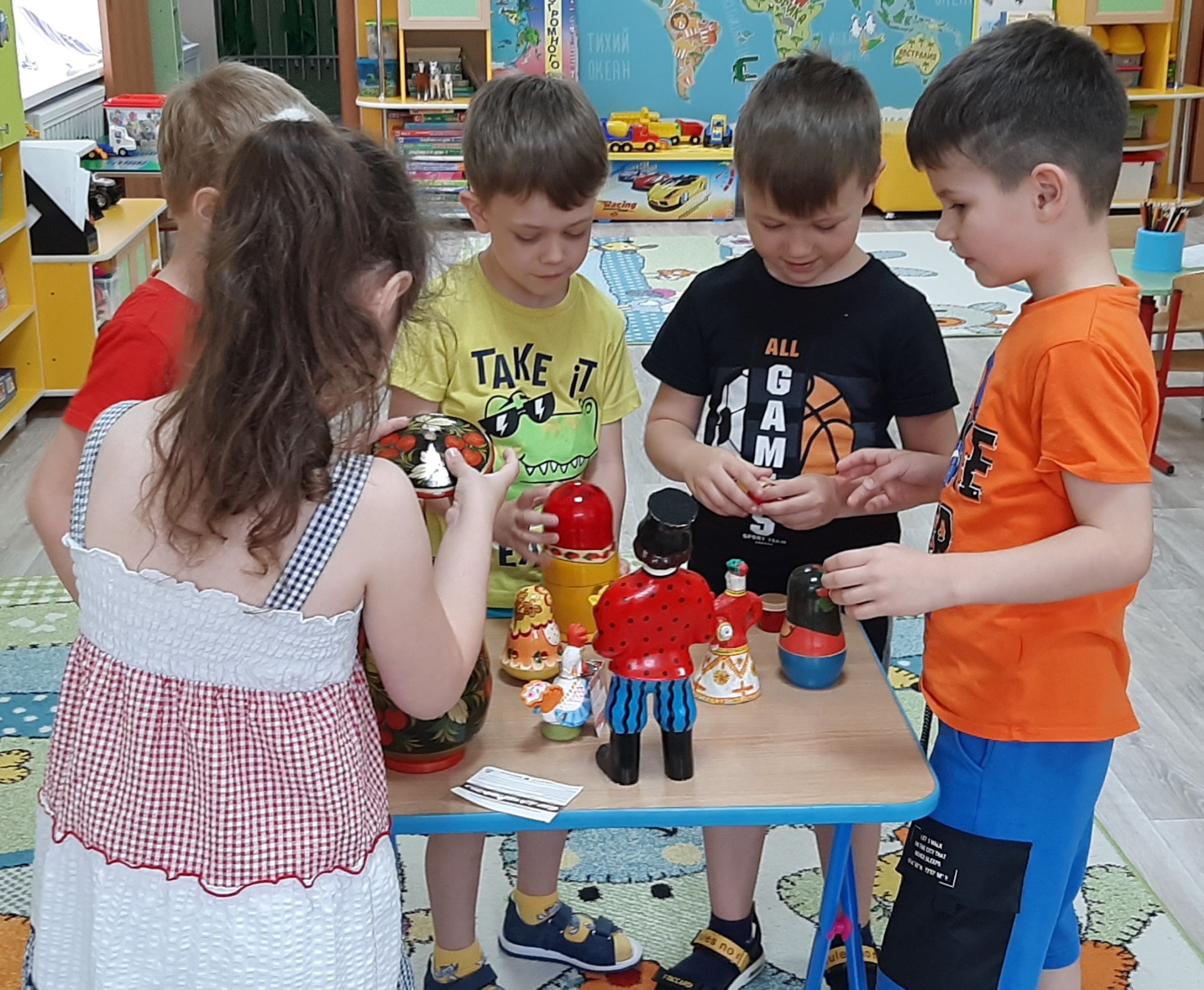 Вот и мы старшей группе «Лебедушка» приобщали детей к традиционной народной культуре. Познакомились с видами народного декоративного искусства, с прекрасными творениями народных умельцев дымковской игрушки, хохломских и городецких изделий. В беседе «Народные промыслы» приобщали к культуре и традициям русского народа, воспитывали лучшие качества, присущие ему (трудолюбие, доброту, взаимовыручку, сочувствие). Формировали патриотические чувства: чувство любви и гордости к Родине. В процессе рисования «Дымковская барыня» развивали художественно-творческие способности, научились самостоятельно создавать выразительные узоры. Играли в настольные игры «Подбери узор», «Подбери и назови промысел?», рассматривали тематические альбомы по теме «Хохлома», «Городецкая роспись», «Гжель».