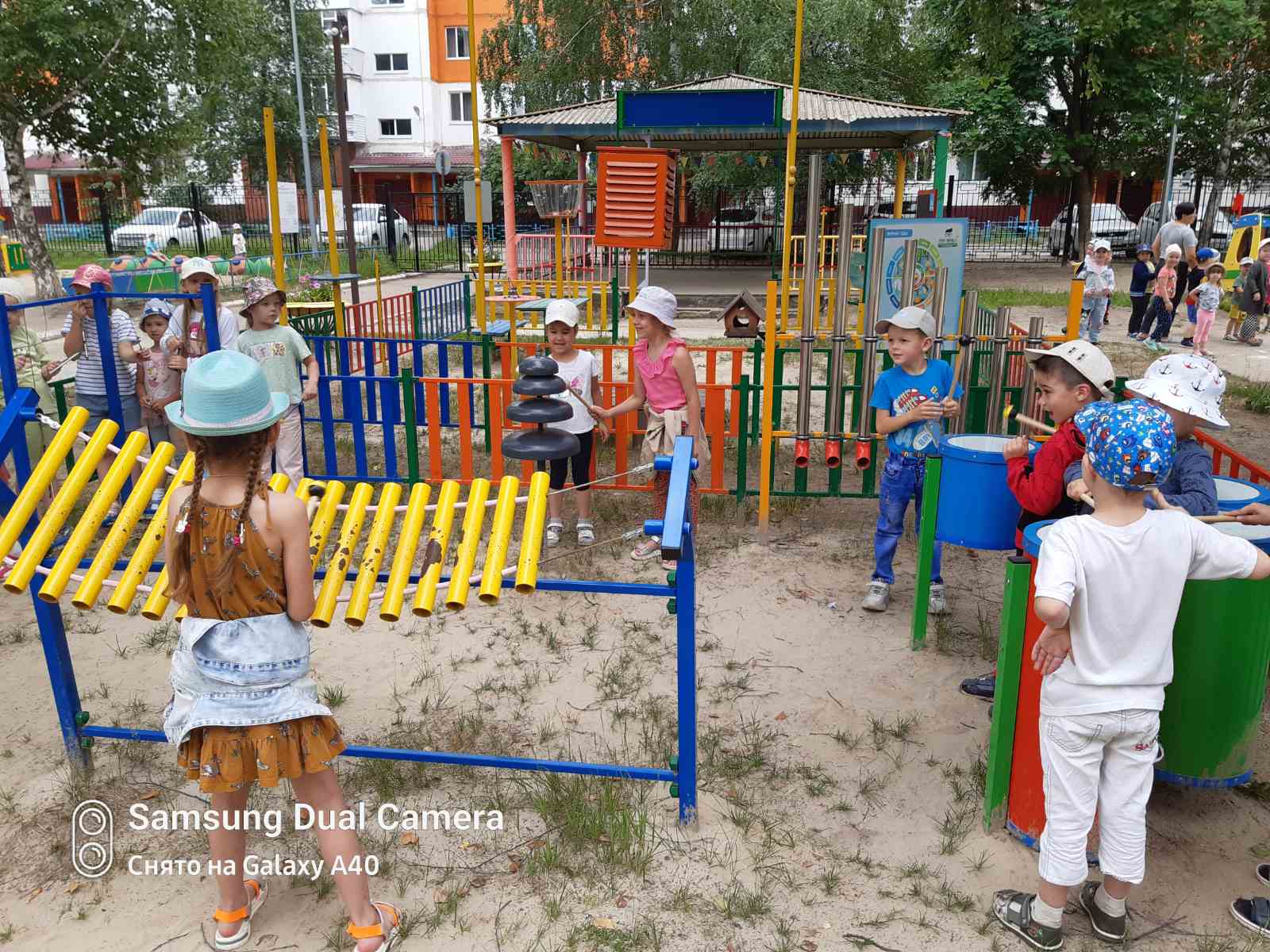 Как интересно, занимательно, с выдумкой организовать досуг детей, увлечь полезными практическими занятиями, как разнообразить их деятельность в летнее время? В этом нам помогает «Музыкальная площадка» расположенная на территории нашего детского сада.