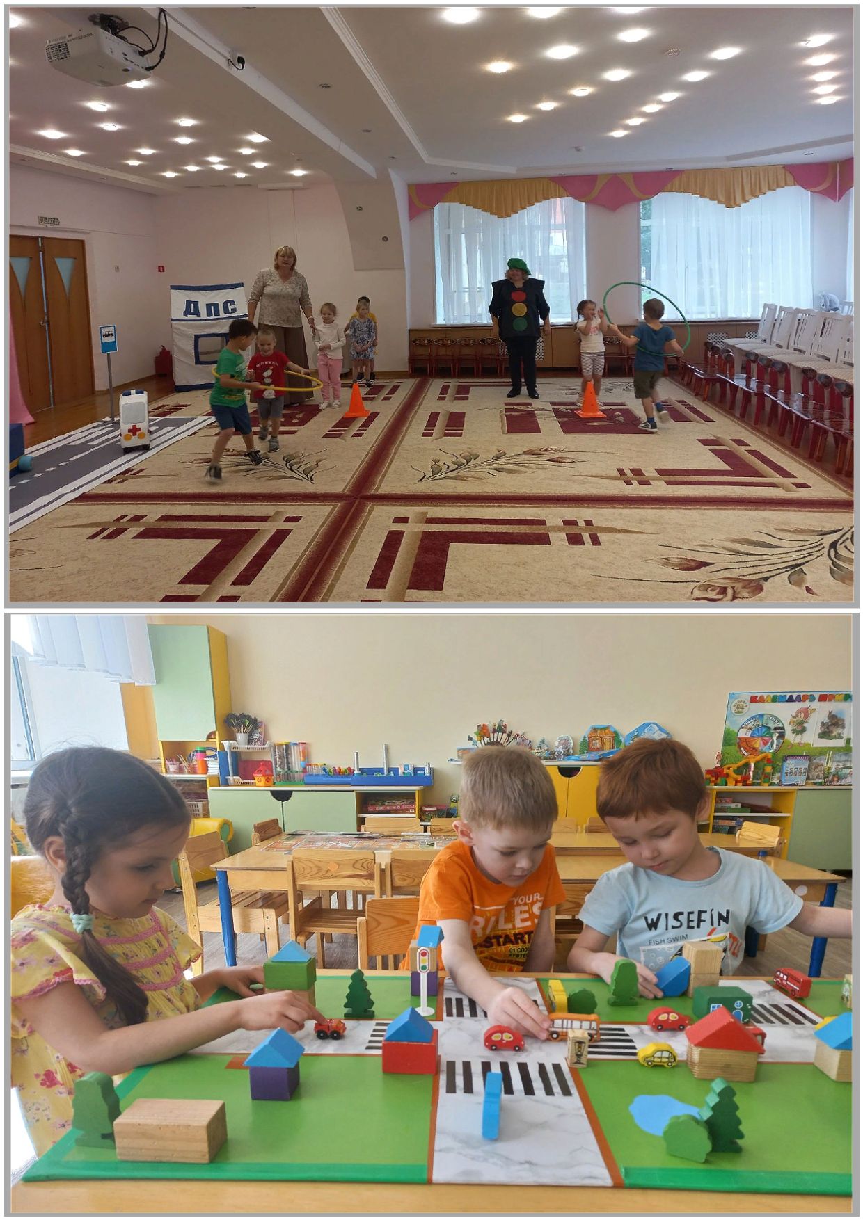 Педагоги повторяют с детьми правила дорожного движения, проводятся Минутки безопасности, решаем проблемные ситуации, в творческих играх учимся безопасности на дороге.
