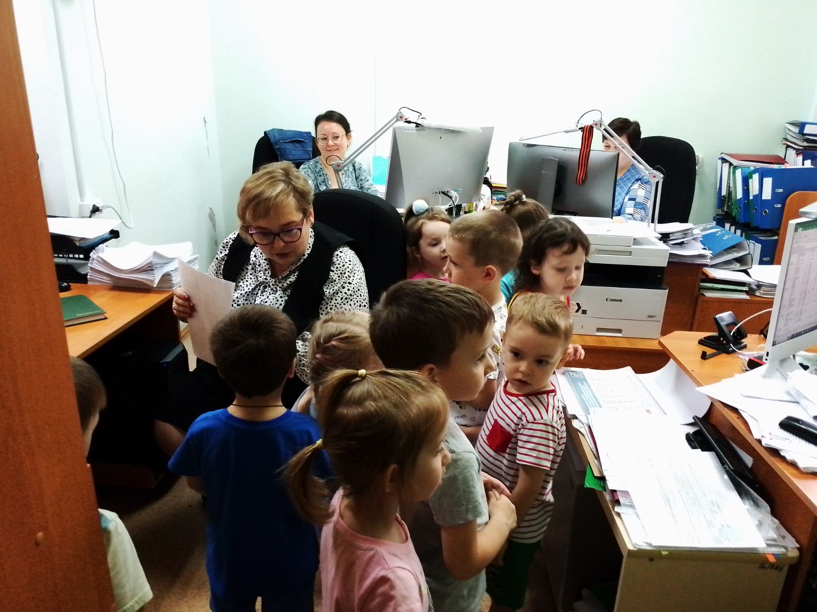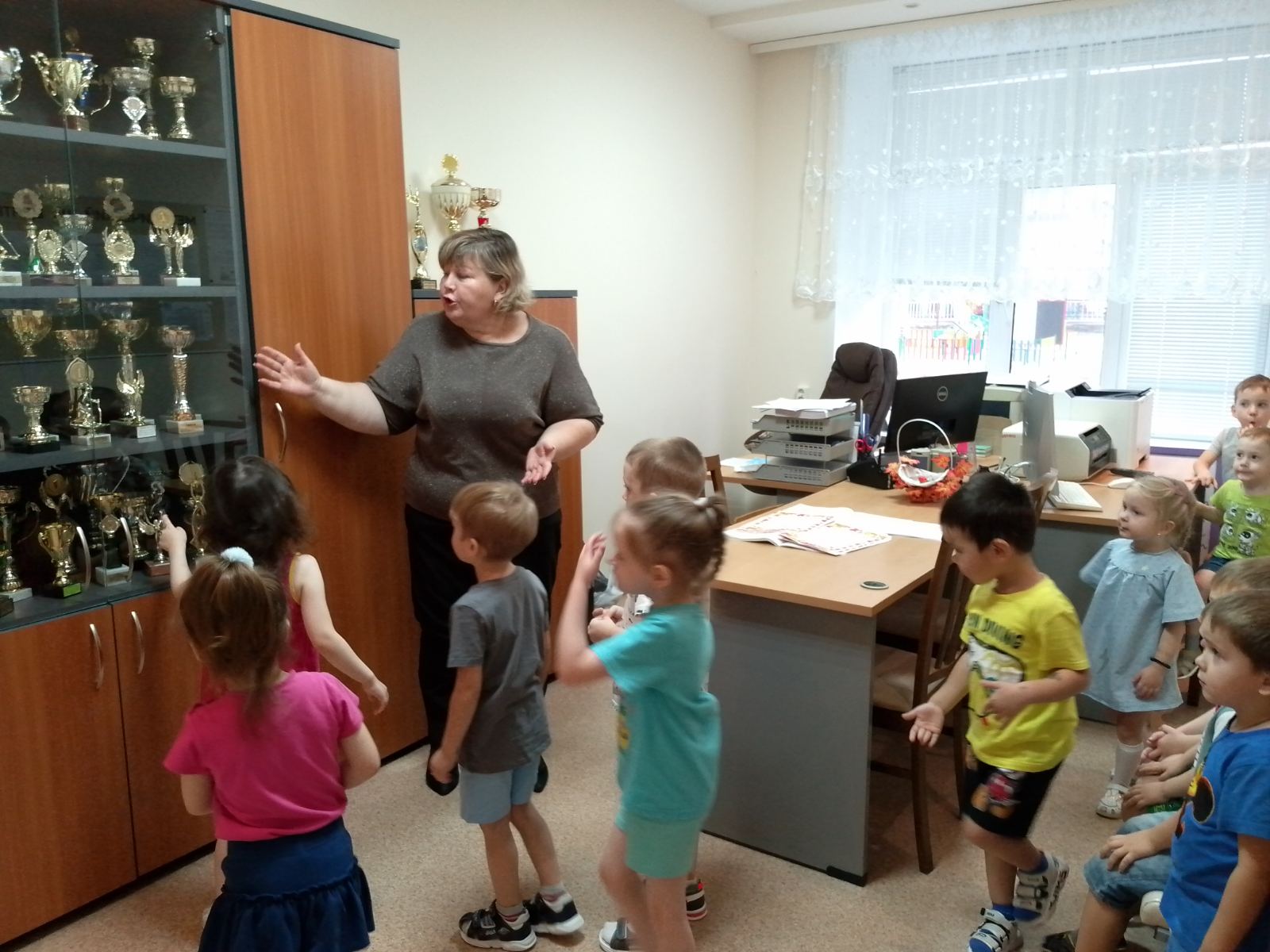 И конечно же, без внимания не остался кабинет старшего воспитателя детского сада – Елены Викторовны, где ребята узнали, что она старший воспитатель в детском саду и отвечает за всех воспитателей, выдает детям пластилин, краски, игрушки и многое другое.