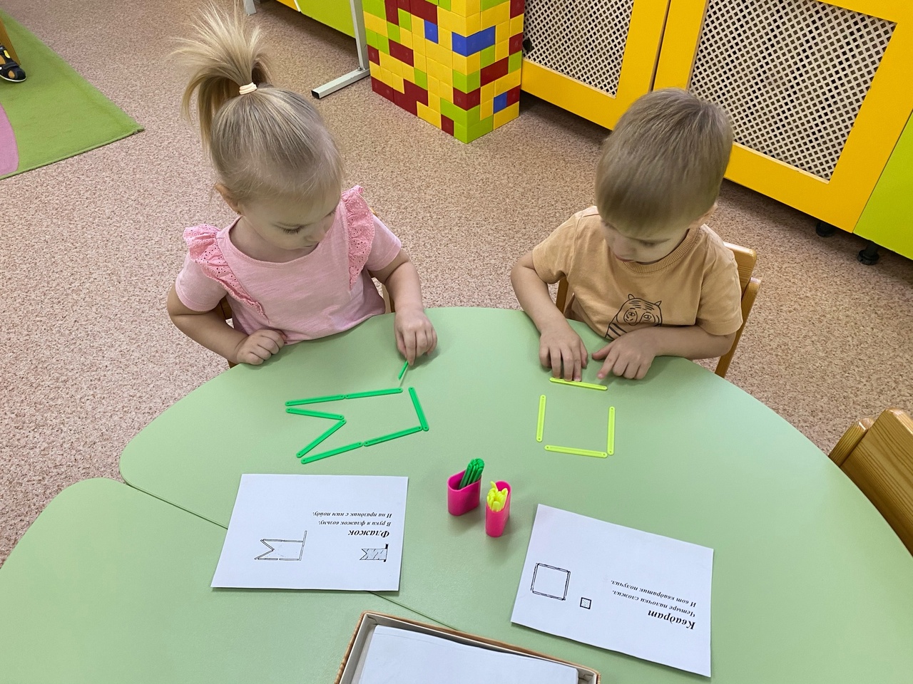В ходе игры, ребята уточнили знания геометрических фигур, упражнялись в порядковом счёте, сравнивали фигуры по величине. Формировали умение выкладывать из счётных палочек силуэтов не только геометрических фигур, но и различных предметов по устной инструкции, по замыслу.