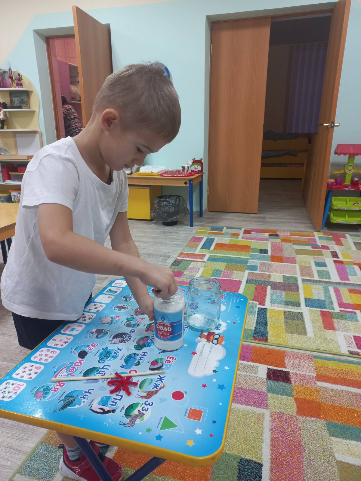 Ребята провели опыт «Выращивание снежинки из соли»,