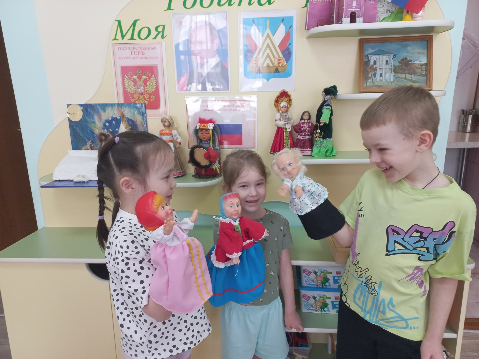 В группе «Почемучки» имеется театральный уголок, в котором есть разные виды театров: кукольный, пальчиковый, настольный, теневой, театр бибабо, театр на кубиках и т.д. Дети с удовольствием используют все виды театров в своей деятельности.