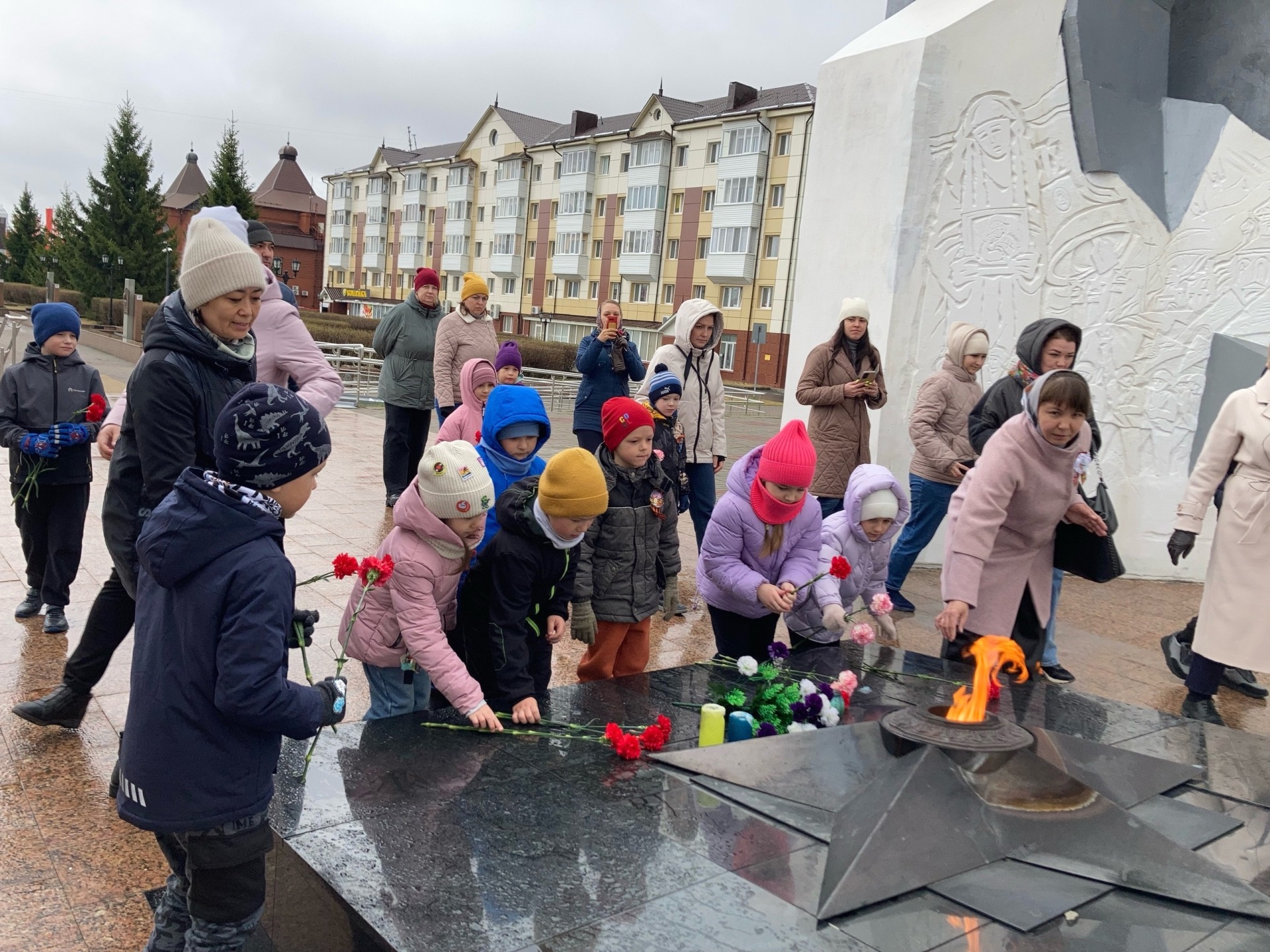 Для формирования у детей патриотических чувств и развития духовности, воспитания любви и уважения к защитникам Родины на основе ярких впечатлений, доступных детям и вызывающих у них эмоциональные переживания мы с детьми и родителями группы «Лебедушка» участвовали в экскурсии к памятнику и возложении цветов к «Вечному огню».