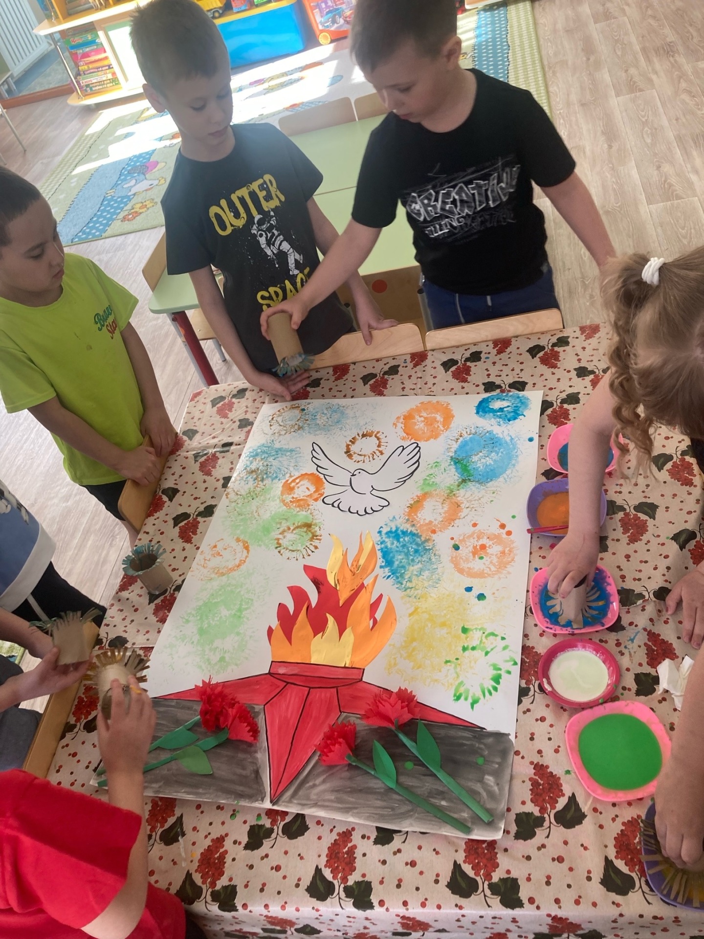 Вечный огонь будоражит человеческую память и воспоминания о прожитых трагедиях. Упоминая об этой горящей странице истории нашим детям, готовясь к празднованию Дня Победы, сделали с ребятами символичную поделку "Мемориал «Вечный огонь». Вечный огонь, два слова, несущие в себе жизнь и память. Два слова, воспринимающиеся как данность.