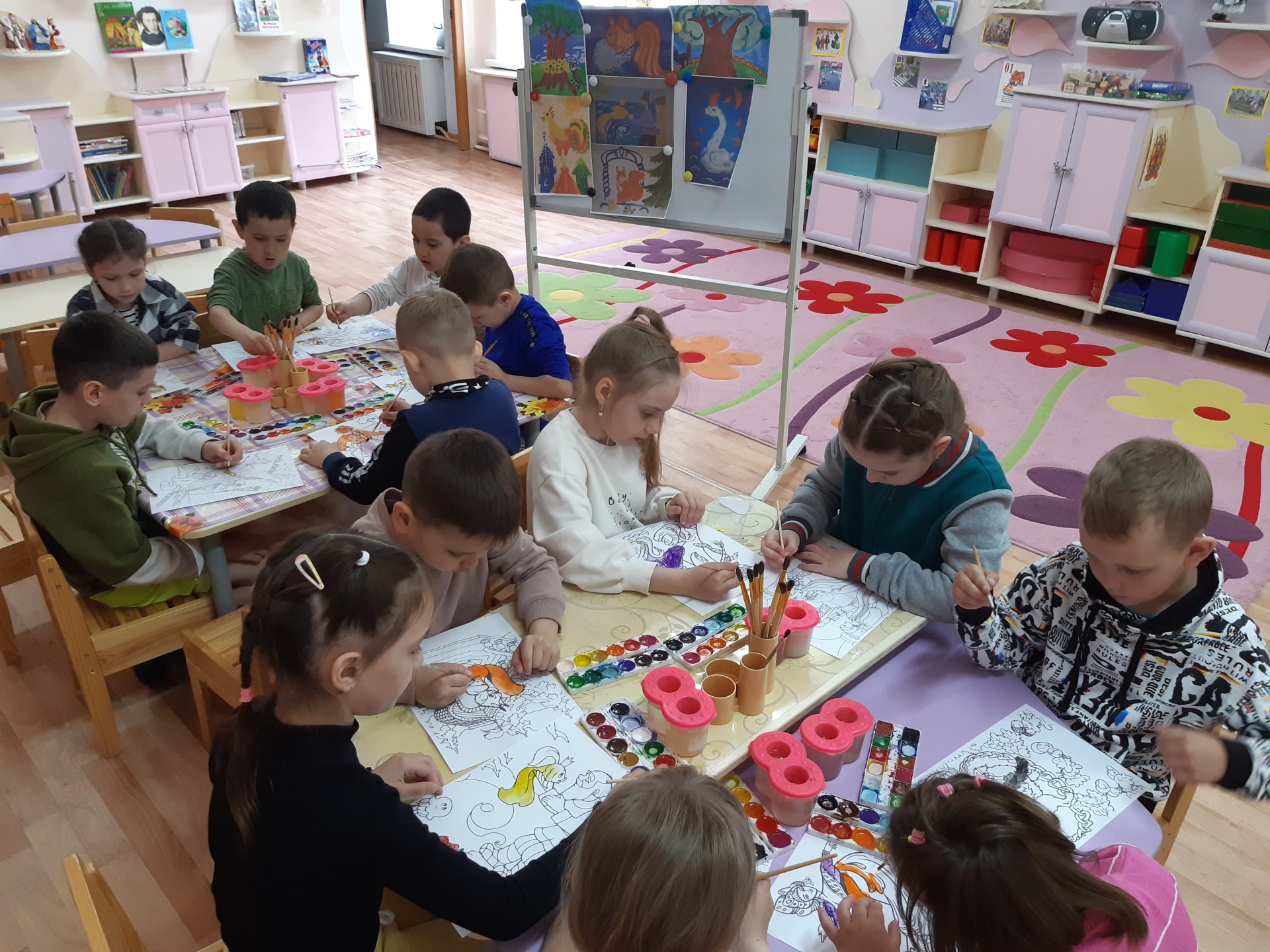 И вторая половина дня по инициативе детей была наполнена разнообразной изобразительной деятельностью по сказкам любимого поэта.