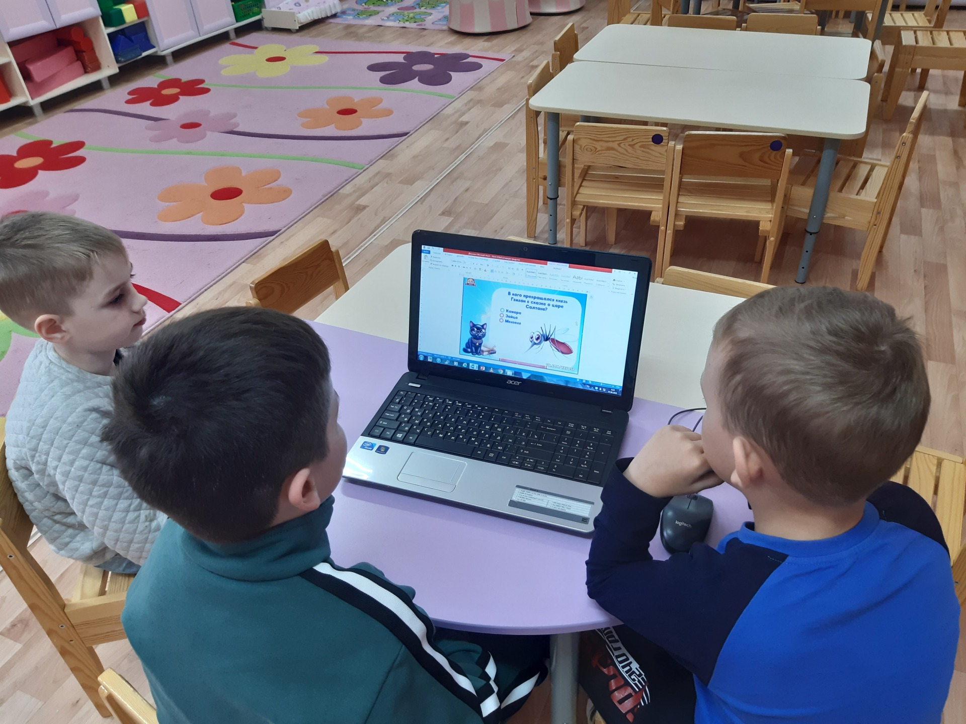 День А.С. Пушкина начался с выставки книг. Любимые сказки, которые не раз уже слушали дети, и многие строчки из которых помнили наизусть, звучали в этот день по-особенному. А викторина по страницам любимых произведений заставила вспомнить яркие моменты сказок. И конечно просмотр мультфильмов по произведениям не оставил равнодушным не одного ребенка.