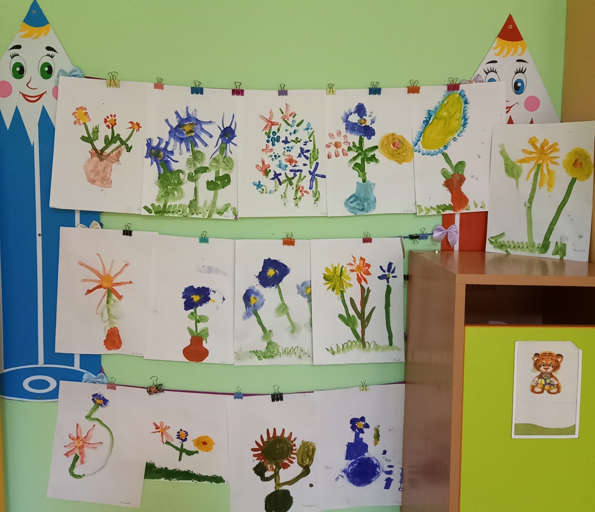 Используя полученные знания о цветах и травах, в мастерской дети писали красками композиции, выполняли аппликацию, своими руками делали вазочку.