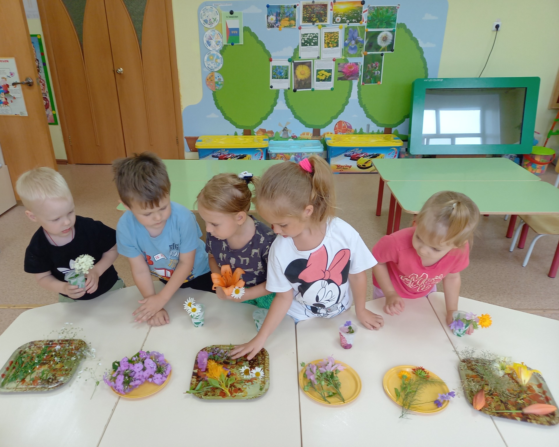 Здесь дети самостоятельно составляли цветочные композиции, делились впечатлениями, называли знакомые им цветы и травы, восхищались красотой летних растений.