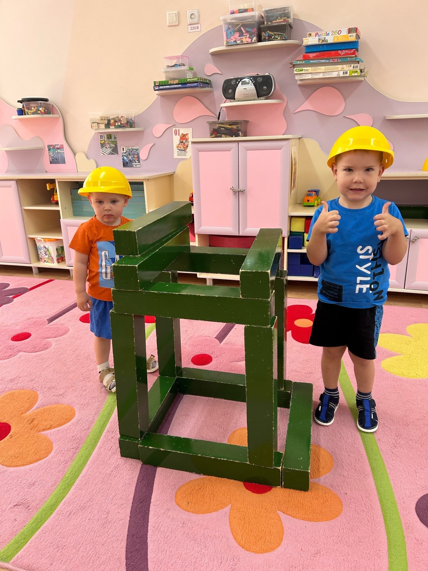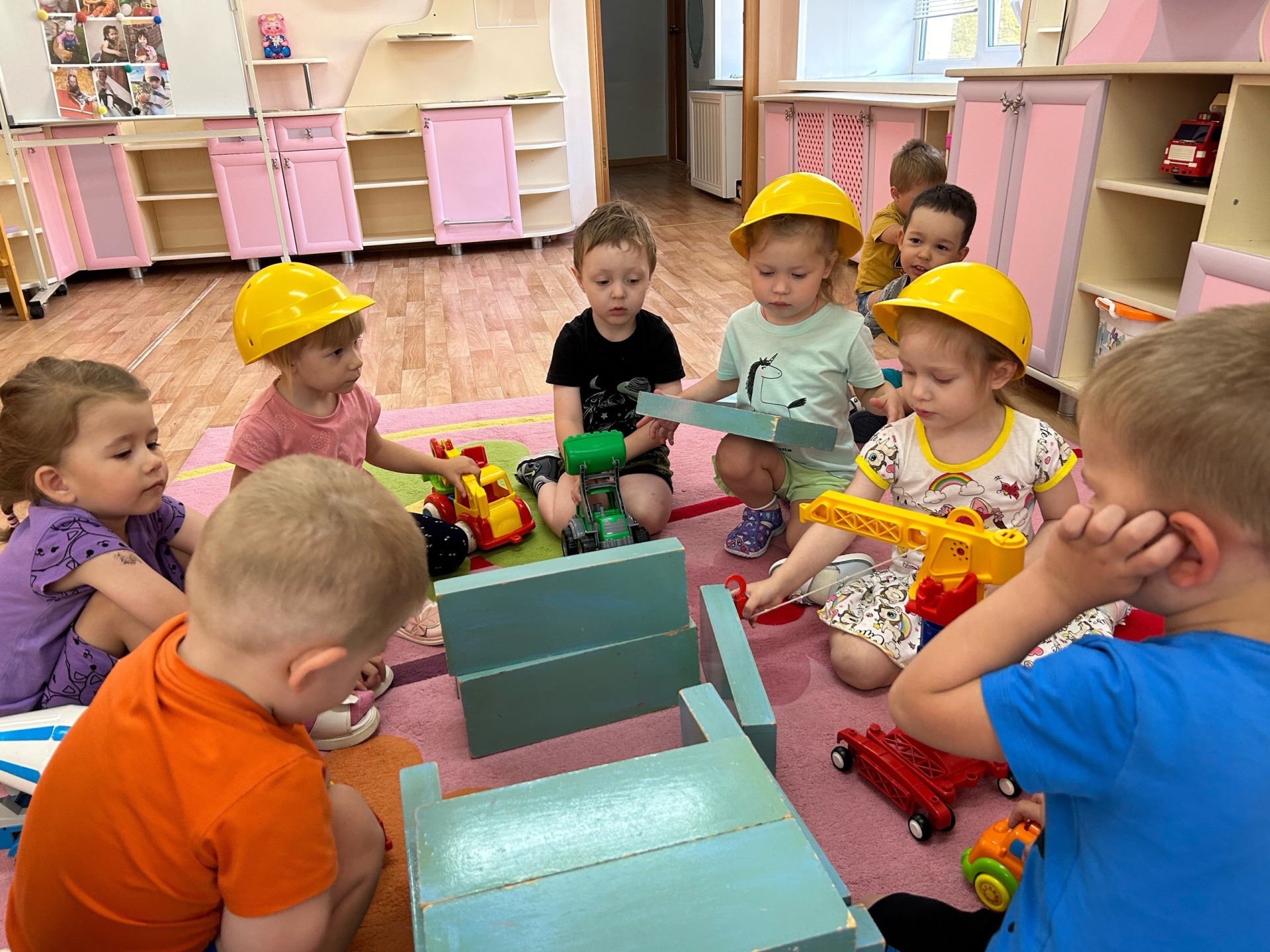 Ежегодно в августе празднуется день строителя, и мы с детьми второй младшей группы «Капелька» познакомились со строительными профессиями, необходимыми инструментами для их деятельности, а также с машинами помощниками.