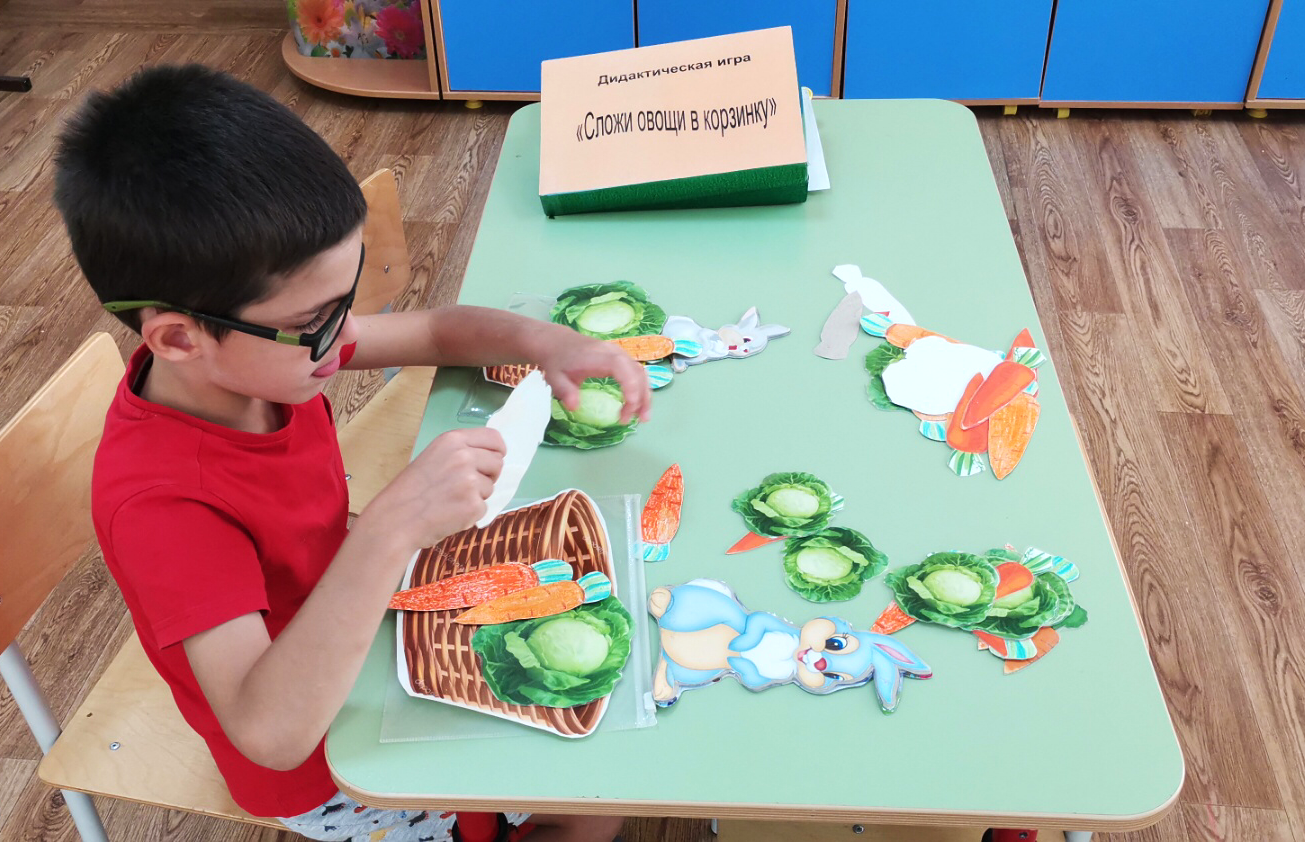 В разнообразных творческих работах, в играх, ребята знакомились с овощами и фруктами, учились определять их не только по внешнему виду, но и с закрытыми глазами на ощупь.