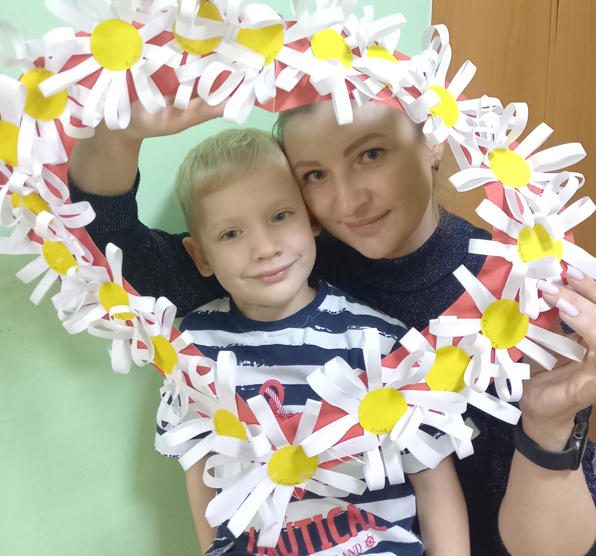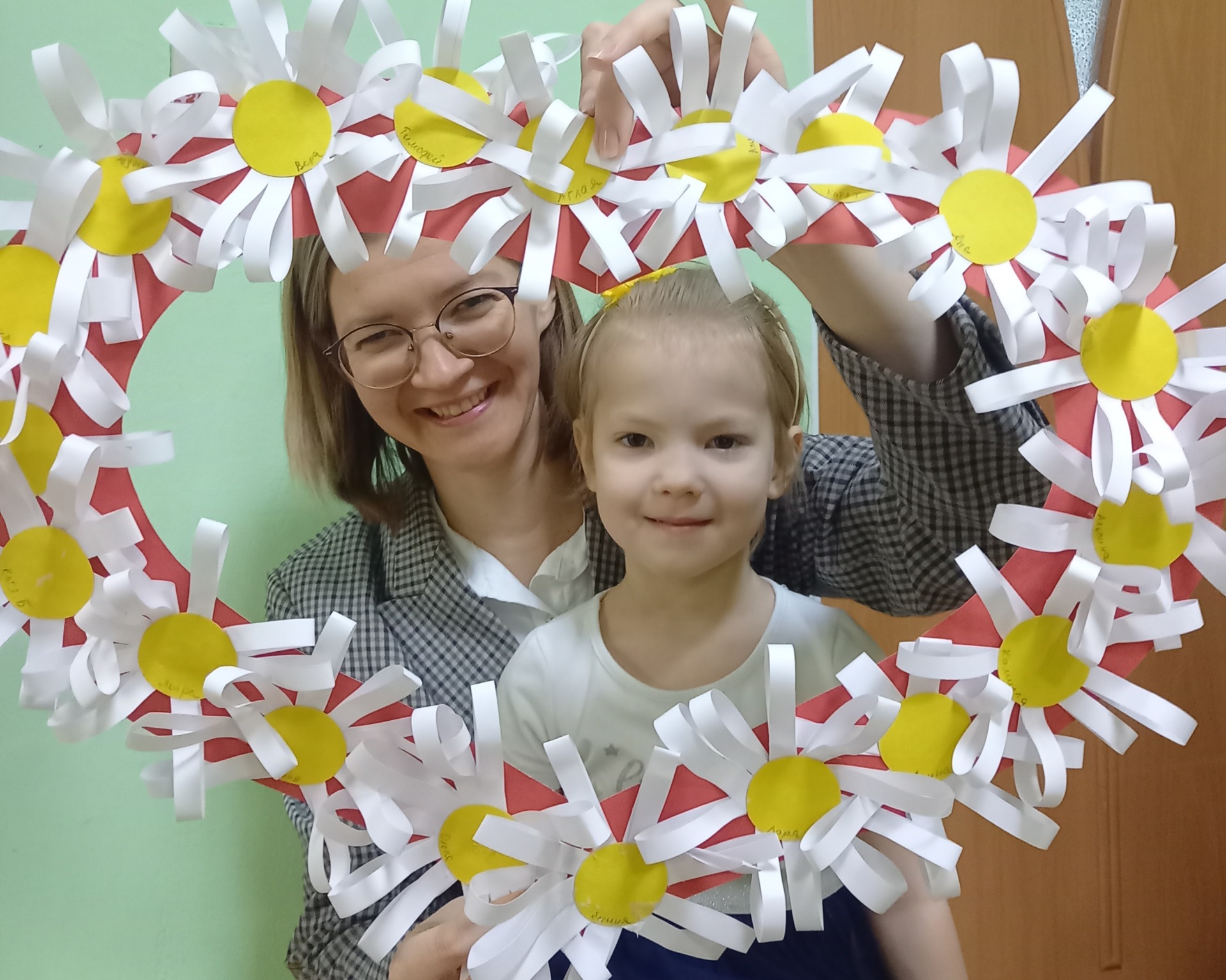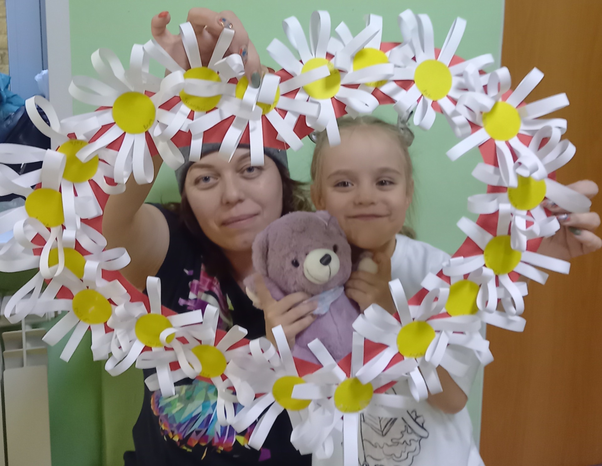 С детьми средней группы "Теремок", сделали своими руками фоторамку в виде сердечка. Украсили её ромашками, а этот цветок является символом семьи, любви и верности, милой простоты и нежности.