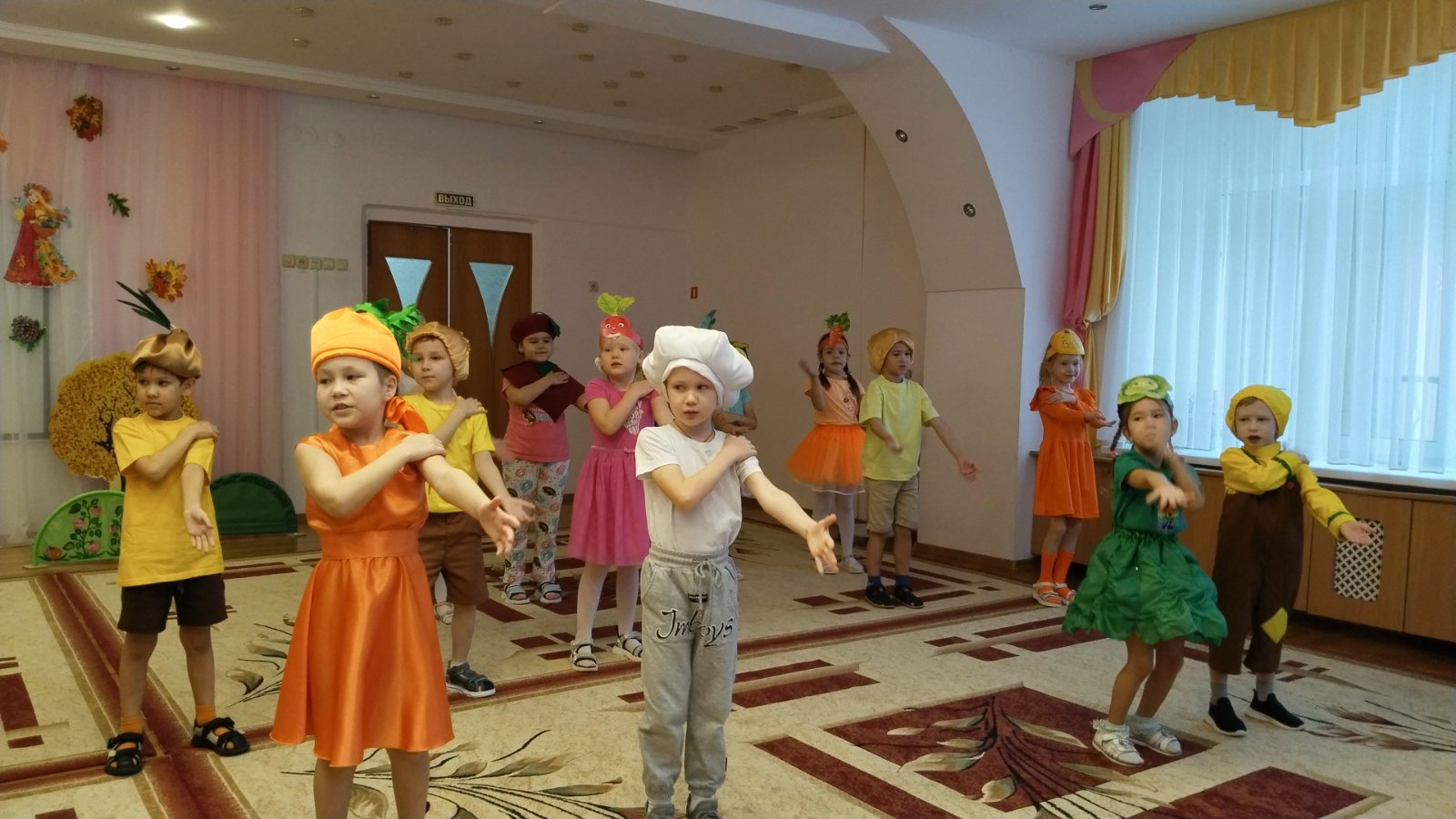 Наши маленькие артисты подготовили удивительную овощную сказку, где главными героями стали любимые всеми овощи. Нас ждали веселые приключения, задорные песни и танцы. Главные роли исполнили ребята, которые превратились в ярких персонажей Морковь, Картошка и Огурец и других овощей. Каждый из них внес свою лепту в чудесную историю о дружбе и взаимопомощи.