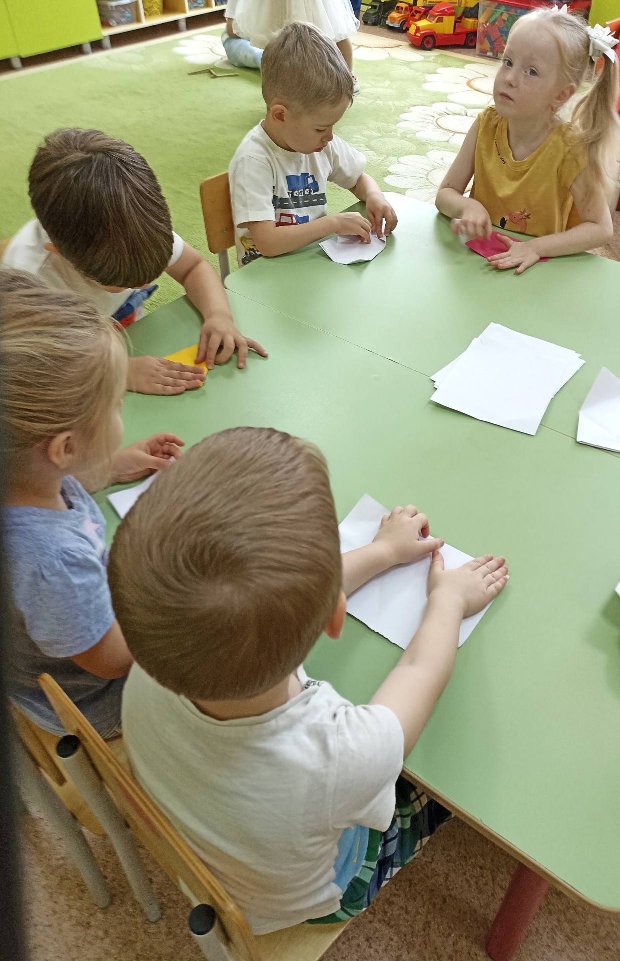 1. Развитие моторики: Сгибание бумаги помогает развивать мелкую моторику рук, что очень важно для детей в их возрасте. Это улучшает координацию движений и ловкость.