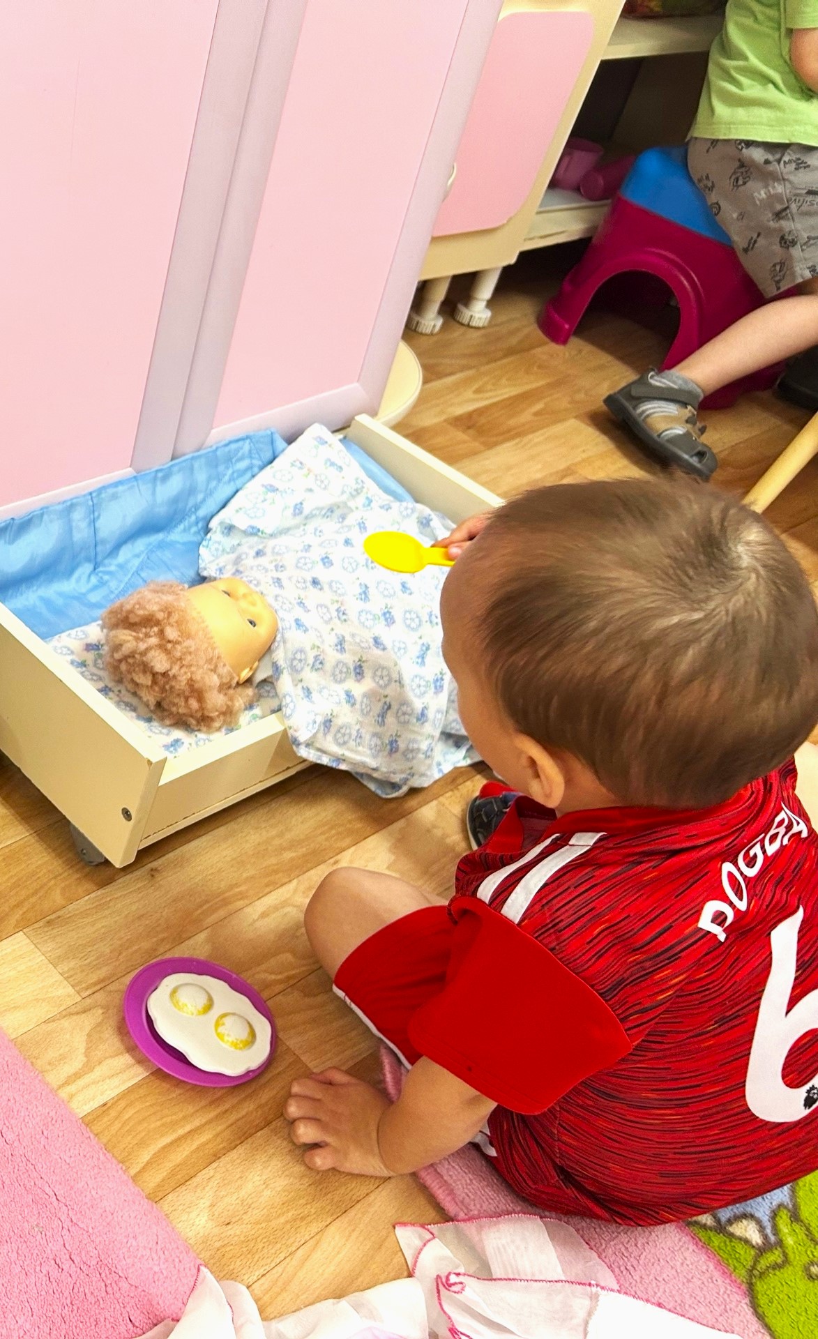 Во второй младшей группе "Капелька",ребята очень любят играть сюжетно-ролевую игру «Дочки-матери» так, девочки взяли на себя роли мам. Куклы им заменили малышей. Девочки-мамы умело готовили обеды для своих детей, ходили с колясками по магазинам, укладывали своих малышей спать. Игра прошла весело и интересно.
