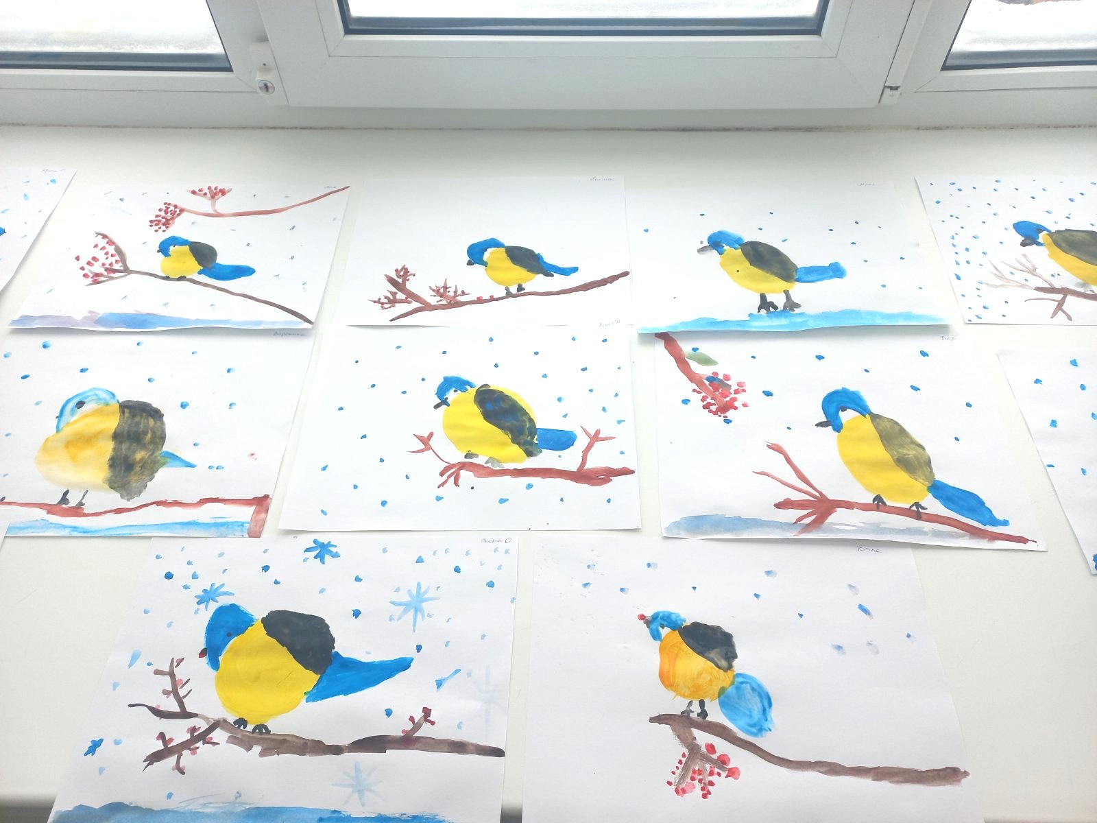 День начался с рисования. Дети с удовольствием творили, создавая яркие изображения синичек. Каждый ребёнок проявил свою фантазию и креативность. Рисование вызывало много положительных эмоций, мы обсудили, чем питаются синички в разные времена года.