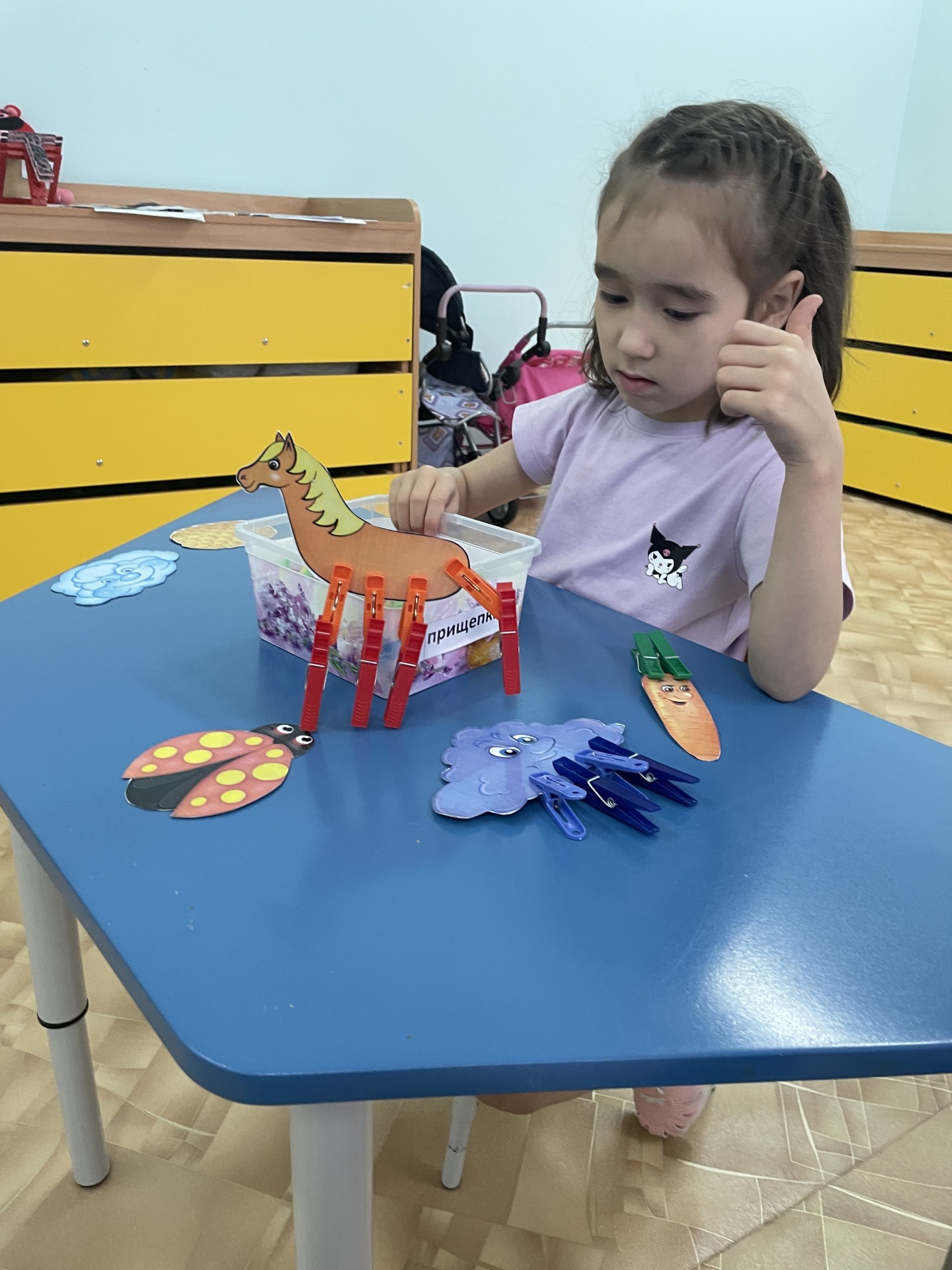 Дидактические пособия «Кто что ест», «Кому что нужно для работы?», «Что растет в огороде, а что в саду?». Игры – задания «Сделай дереву веточки», «Сделай колючки ёжику», «Сделай лучики солнышку». Дидактические игры с прищепками «Мамины помощники», «Полосочки», «Подбери по цвету».