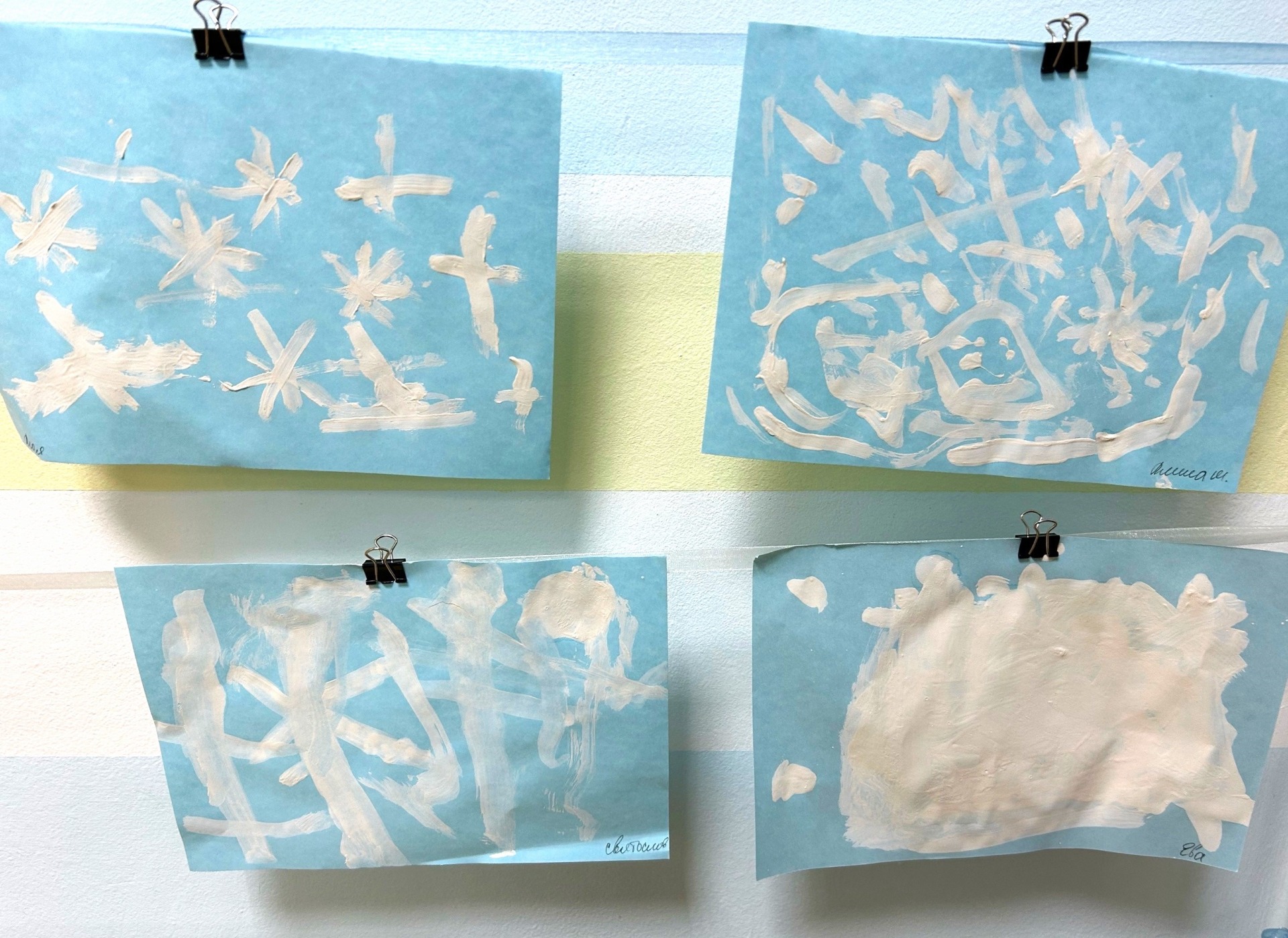 И мы с ребятами группы №6 «Капелька» проводили опыты со снегом, мы лепили из пластилина, рисовали не только с помощью кисточки, а также использовали нетрадиционные техники. Делали дыхательную гимнастику, рисовали ножками. Превращаясь в снежинки, мы танцевали и разучивали песню «Снежинка».