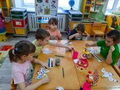 Народное творчество — это неотъемлемая часть культурного наследия каждого народа. В подготовительной группе «Почемучки» мы с детьми познакомились с дымковской игрушкой. Это не просто сувенир, а целый мир, насыщенный традициями, культурой и историей. Она впервые возникла 400 лет назад и до сих пор не потеряла своей актуальности. Это искусство рукотворное. Каждая игрушка создание одного мастера, все они уникальны и единственны. Познакомились с особенностями росписи, узнали, что чаще всего на игрушках изображаются животные, люди и сцены из жизни в деревне. Ребята с интересом разгадывали загадки, рассматривали картинки и иллюстрации, слушали стихи о дымковских игрушках. Дети с удовольствием рисовали и конструировали игрушки своими руками. Свои игрушки они выполнили в ярких цветах, призывающих показать радость жизни. Игрушки получились яркими и интересными.