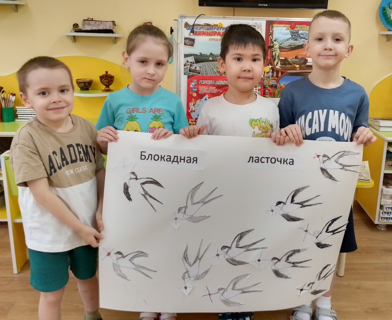 В продолжение темы организовали акцию "Блокадная ласточка", которая символизировала надежду и возрождение.