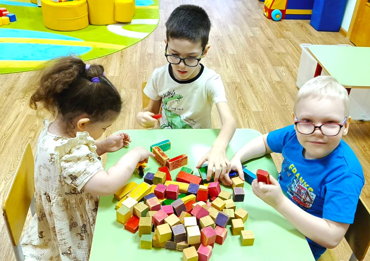 Дети группы компенсирующей направленности "Малышок" учились строить гараж из разных по величине кубиков, понимать речевые инструкции. Обыгрывали различные игровые ситуации.