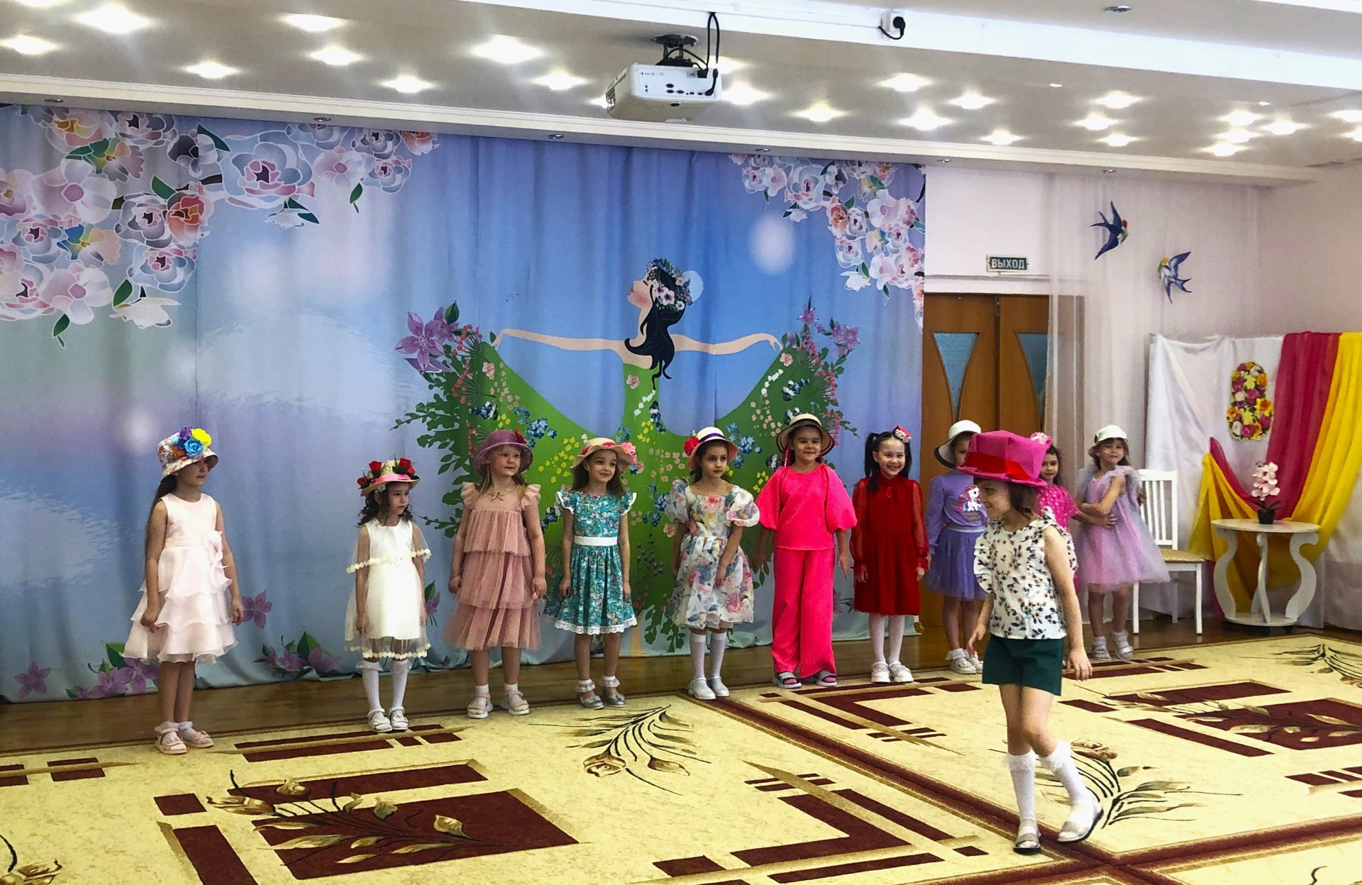 Каждая участница показала себя, затем последовали творческие испытания: танцевальный конкурс, где девочки показали грацию и пластику, и вокальный конкурс, где звучали звонкие детские голоса. Особым сюрпризом для зрителей стало домашнее задание – каждая конкурсантка представила оригинальную шляпу, созданную своими руками.
