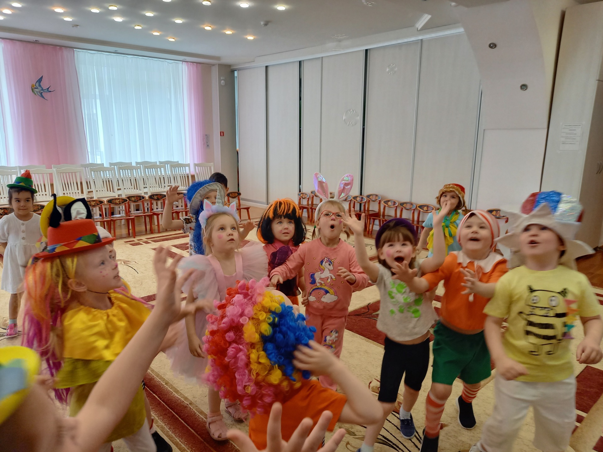 Утро началось с того, что дети наряжались, используя парики, шляпки, костюмы, разрисовывали лица, что очень восхитило и понравилось детям.
