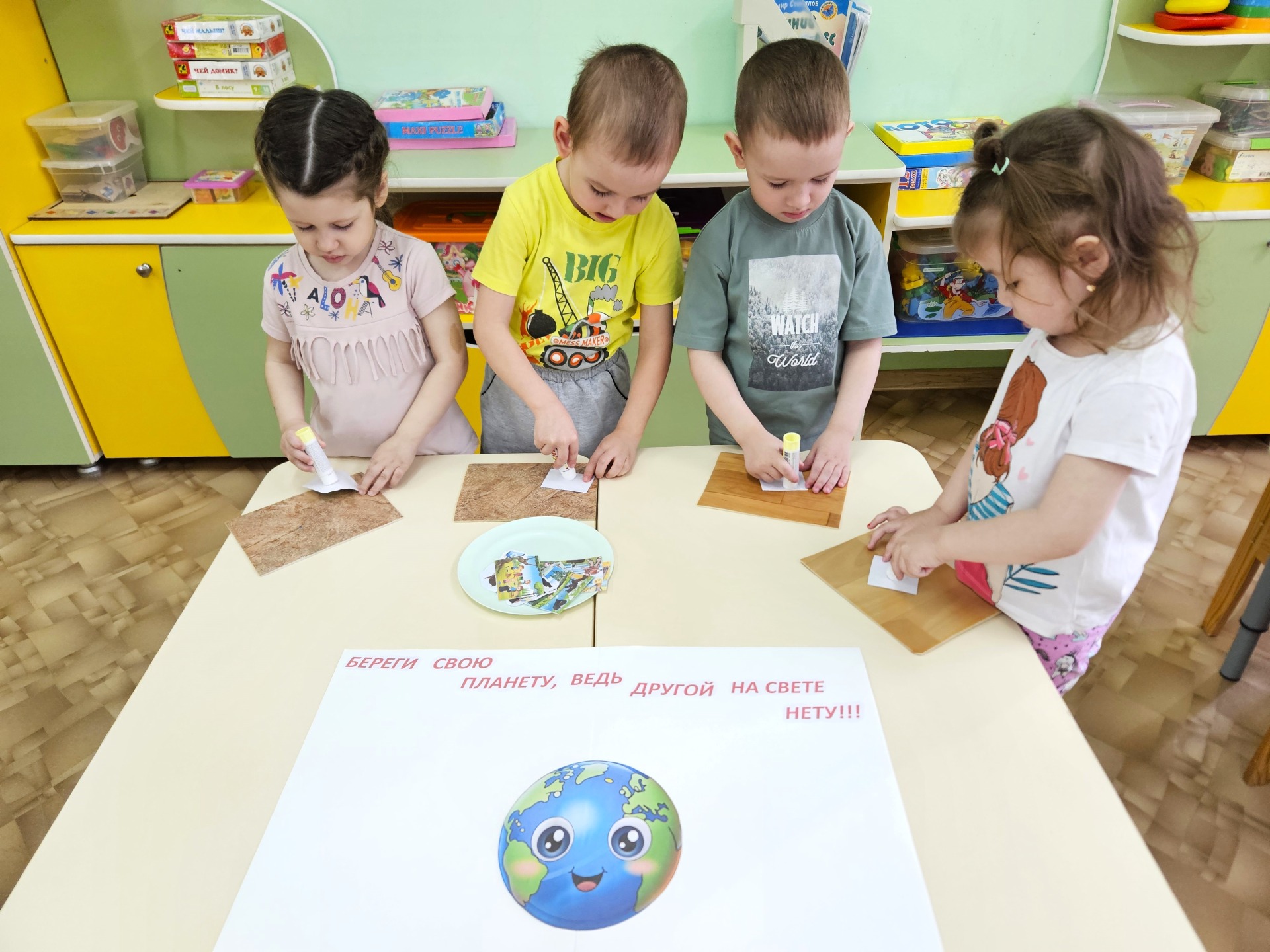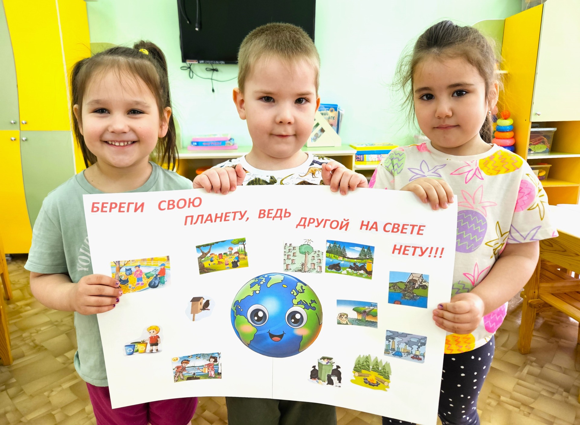 В группе №6 «Капелька» прошел день земли. Где дети в игровой форме узнали и смогли закрепить правила сортировки мусора, экономии ресурсов, для чего нужно озеленять планету и что такое экопродукты.