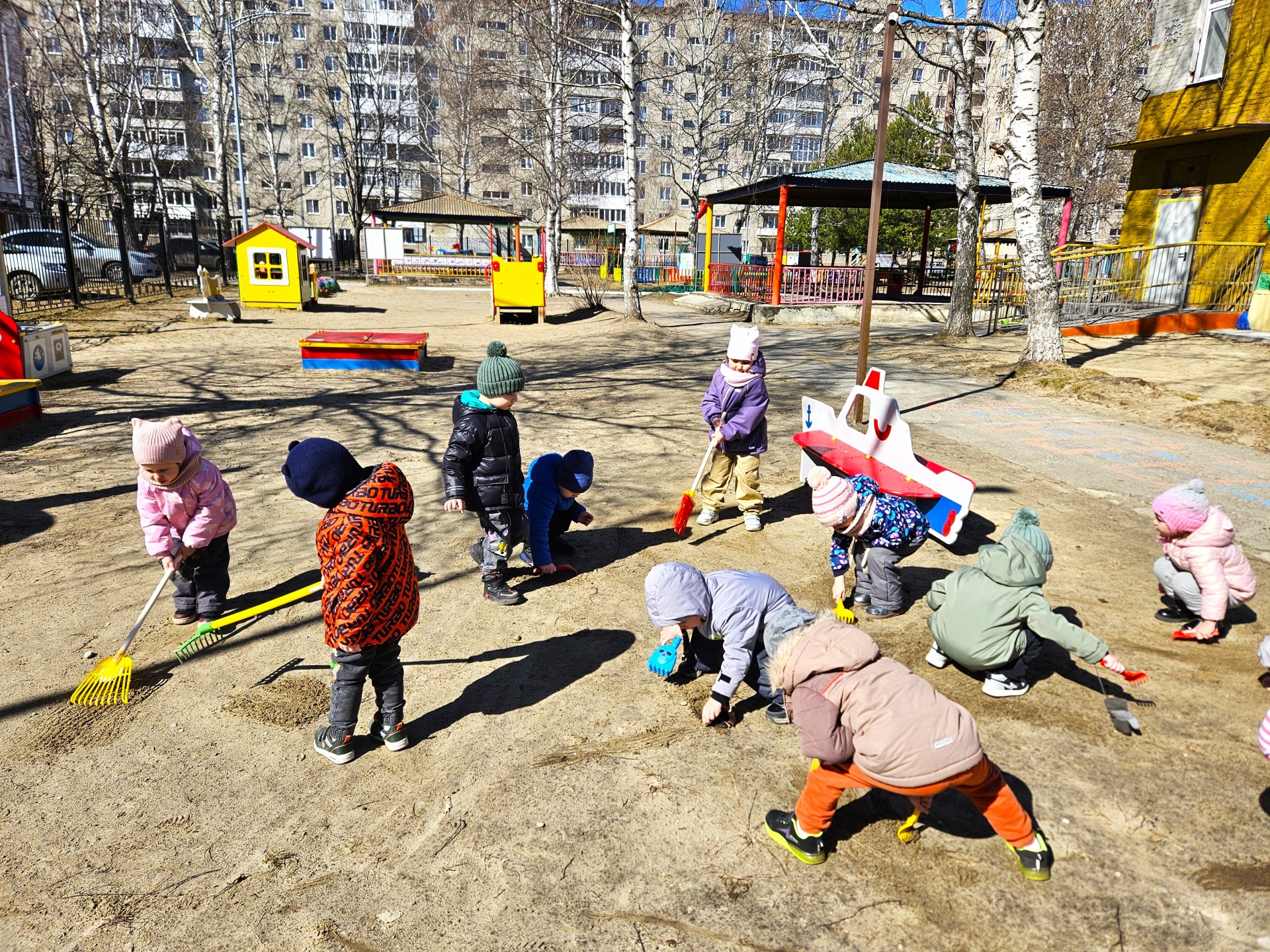 А на прогулке дети решили сами привести свой участок в порядок.