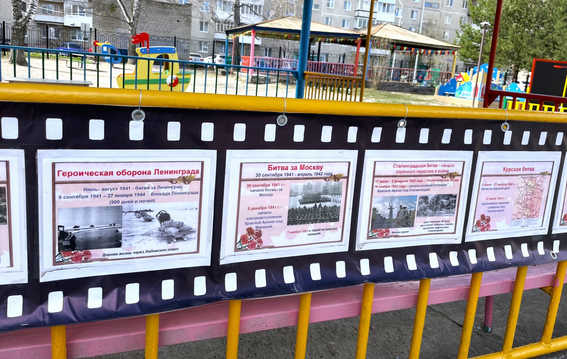 1. Фотозоны с кадрами войны. Здесь запечатлены моменты героизма, стойкости и мужества. Пусть эти фотографии станут напоминанием о цене, которую заплатили за мирное небо над головой.