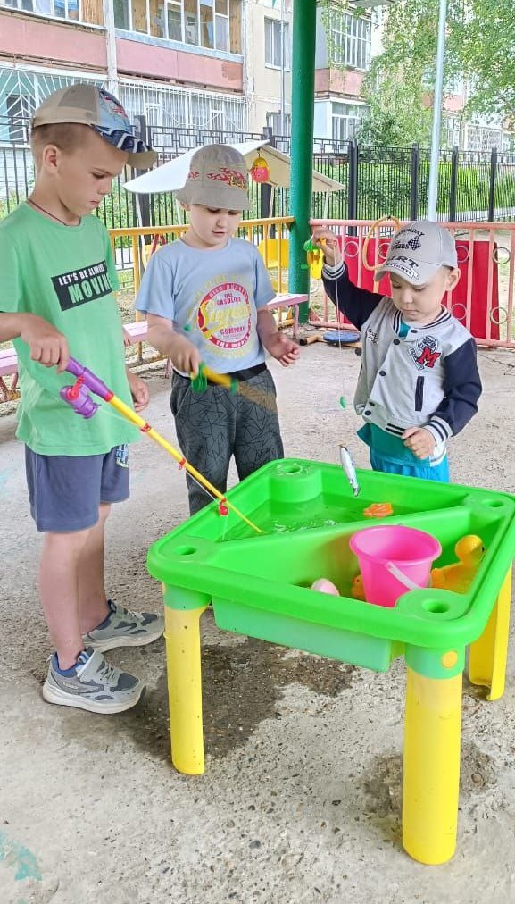 Ребята группы компенсирующей направленности «Ладушки» с радостью отправились на свежий воздух, где их ждали веселые игры с песком и водой. Такая деятельность всегда интересна детям, она закаливает детский организм, поднимает настроение.