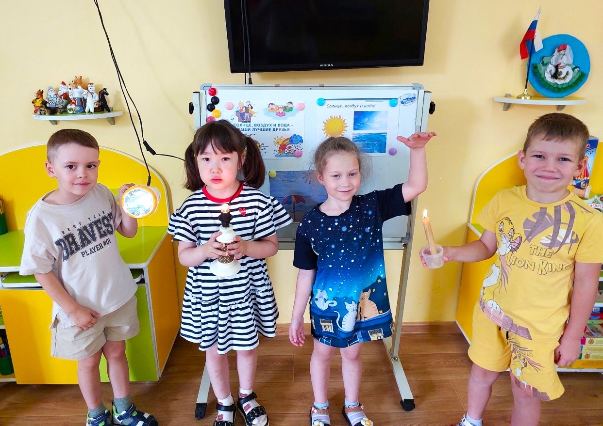 В старшей группе «Семицветик» реализован проект «Солнце, воздух и вода – наши лучшие друзья!". Во время познавательных бесед, рассказов, просмотра презентаций, дети узнали о значении солнца, воздуха и воды, и их роли в жизни природы и человека. Обсуждали, почему важно беречь эти ресурсы. Повторили правила поведения в жаркие летние дни на солнце, безопасного поведения на водоёме.