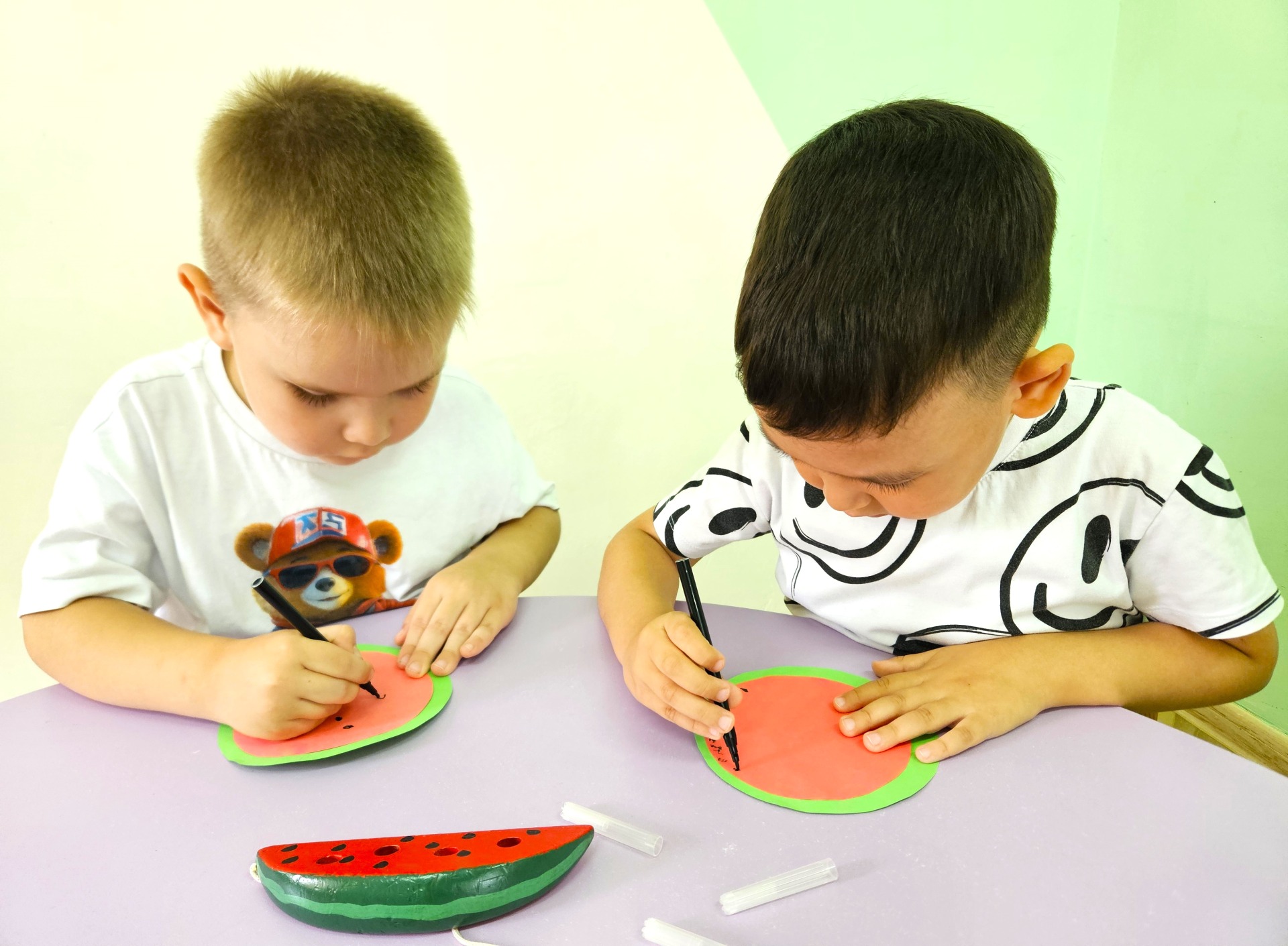 В группе «Капелька» день был посвящен двум самым любимым по мнению детей ягодам – клубнике и арбузу. Дети с помощью презентации смогли узнать, как и где растут эти ягоды. Играя в игру, выделяли отличия и сходство между ими.