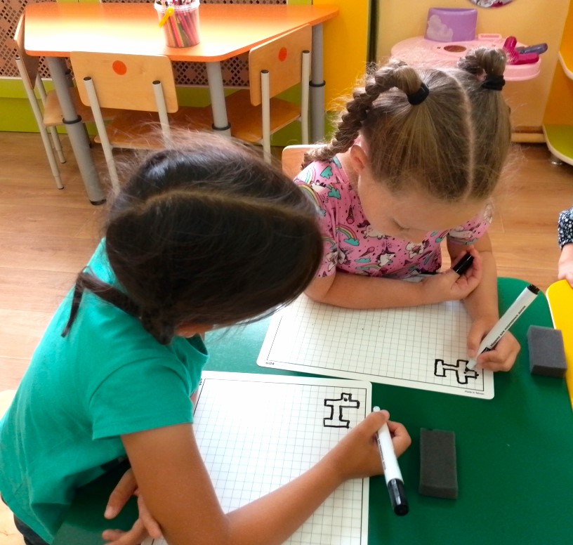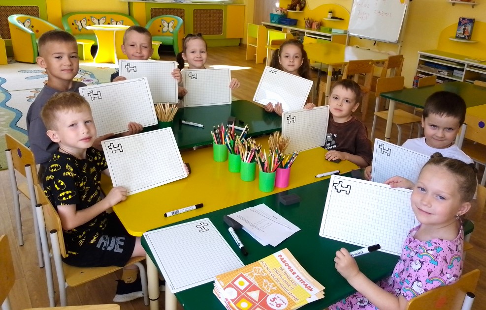 Воспитанники старшей группы "Семицветик", впервые попробовали выполнить графический диктант на пластиковых планшетах, используя специальные маркеры.