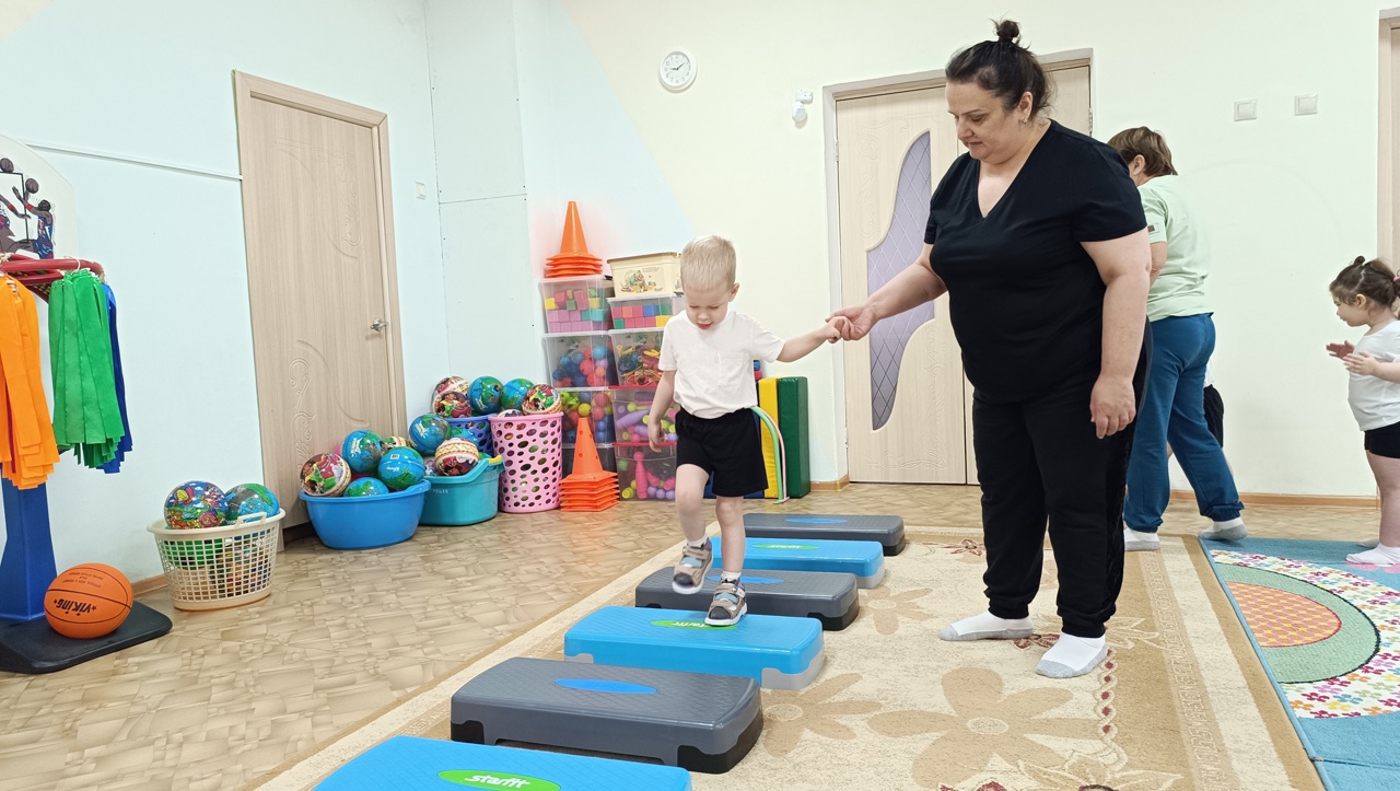 В целях оздоровительной и лечебно-профилактической работы с детьми группы компенсирующей направленности для укрепления мышечно-связочного аппарата голеностопного сустава и стопы на физкультурных занятиях, применяются различные виды ходьбы: по ребристым и ортопедическим дорожкам, массажным коврикам, упражнения с гимнастическими палками и массажными мячами, упражнения на фитболах. Происходит активное формирование сводов, укрепляются ослабленные мышцы ног, тренируется координация движений, формируется правильная походка. Все упражнения проводятся в игровой форме, что создаёт хороший настрой для детей, а это очень важно для здоровья каждого.