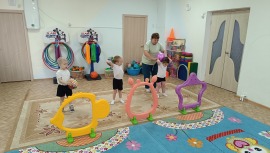 Целью физкультурных занятий на группе компенсирующей направленности «Малышок» является поддержание и развитие двигательных функций, укрепление мышечного корсета и формирование положительного отношения к физической активности. Физическая реабилитация детей группы «Малышок» направлена на развитие телесных ощущений, выработку координаций движений, и согласованность, развитие умения произвольно расслаблять скелетную и дыхательную мускулатуру. Занятия включают в себя коррекционные упражнения, дыхательную гимнастику, самомассаж, логоритмические упражнения. Игры и игровые упражнения, для предотвращения и исправления отклонений в формировании правильной осанки и коррекции плоскостопия.