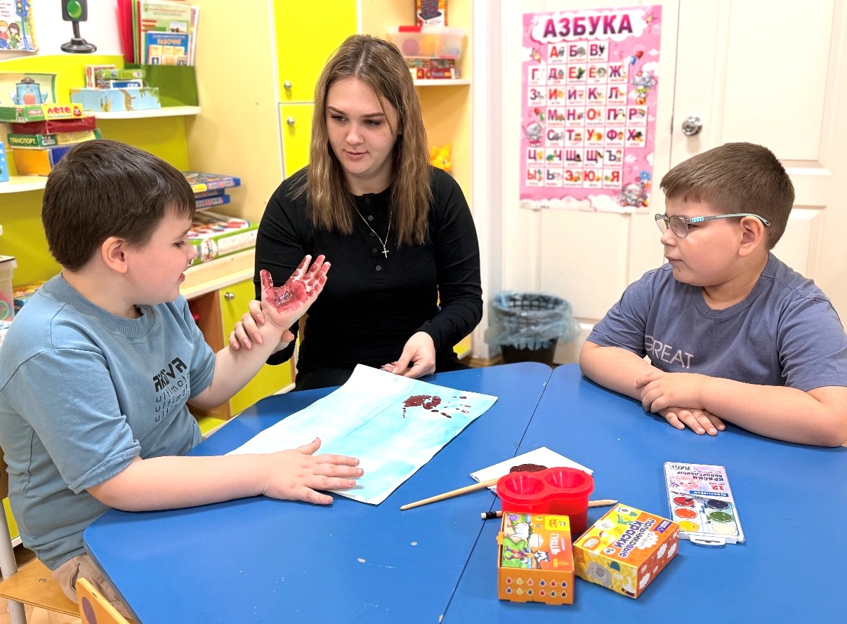 А в группе мы вместе создали коллективную творческую работу — яркий рисунок, на котором изобразили деревья при помощи отпечатывания ладони, также использовали пластилин. Получилась настоящая лесная сказка!