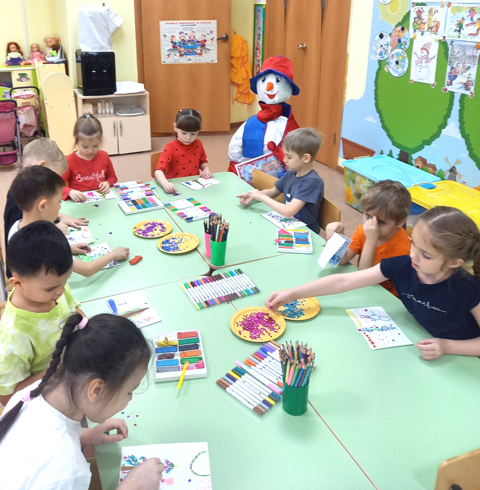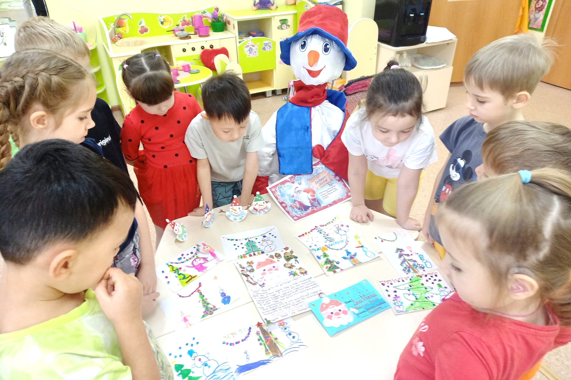 Все старались рисовать яркие, праздничные композиции, украшали их блестящими пайетками. Также дети все вместе написали письмо и рассказали об интересных событиях уходящего года, вручили письмо нашему герою и пожелали ему удачного пути.