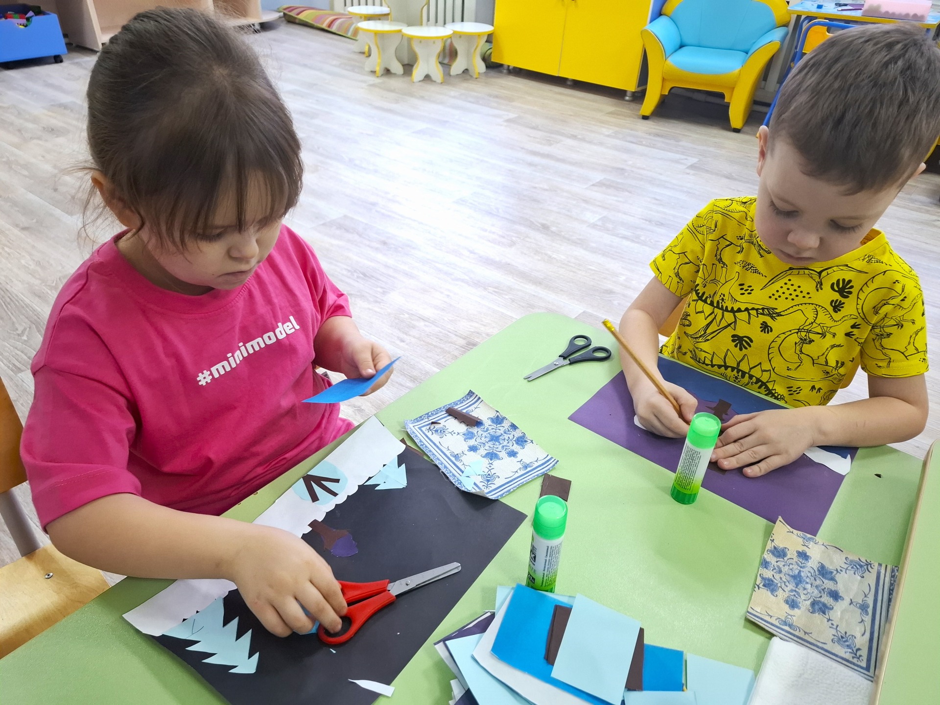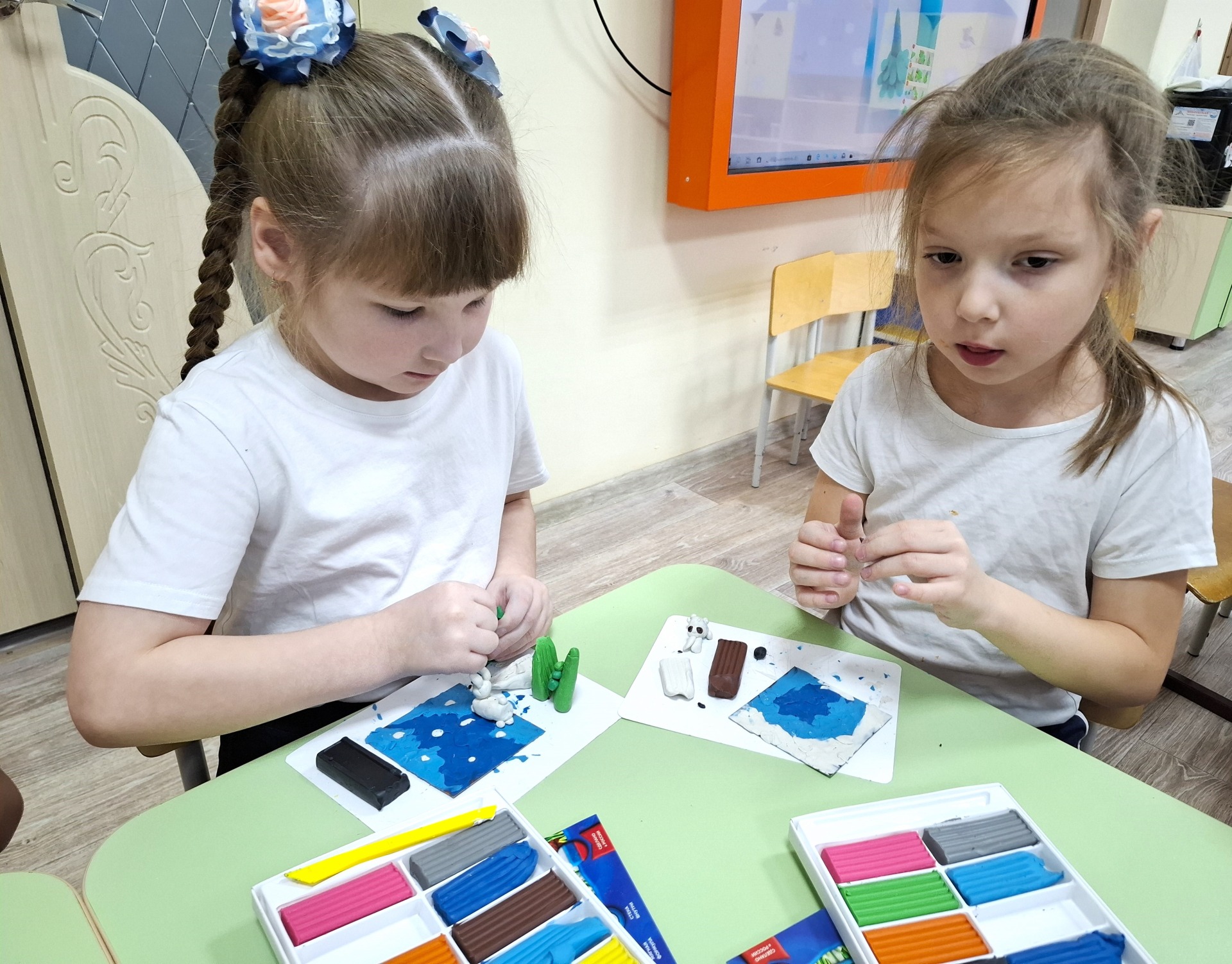 С огромным желанием, дети выражали свои впечатления в творческих работах. С интересом смешивали краски, получая различные оттенки синего, экспериментировали с пластилином.