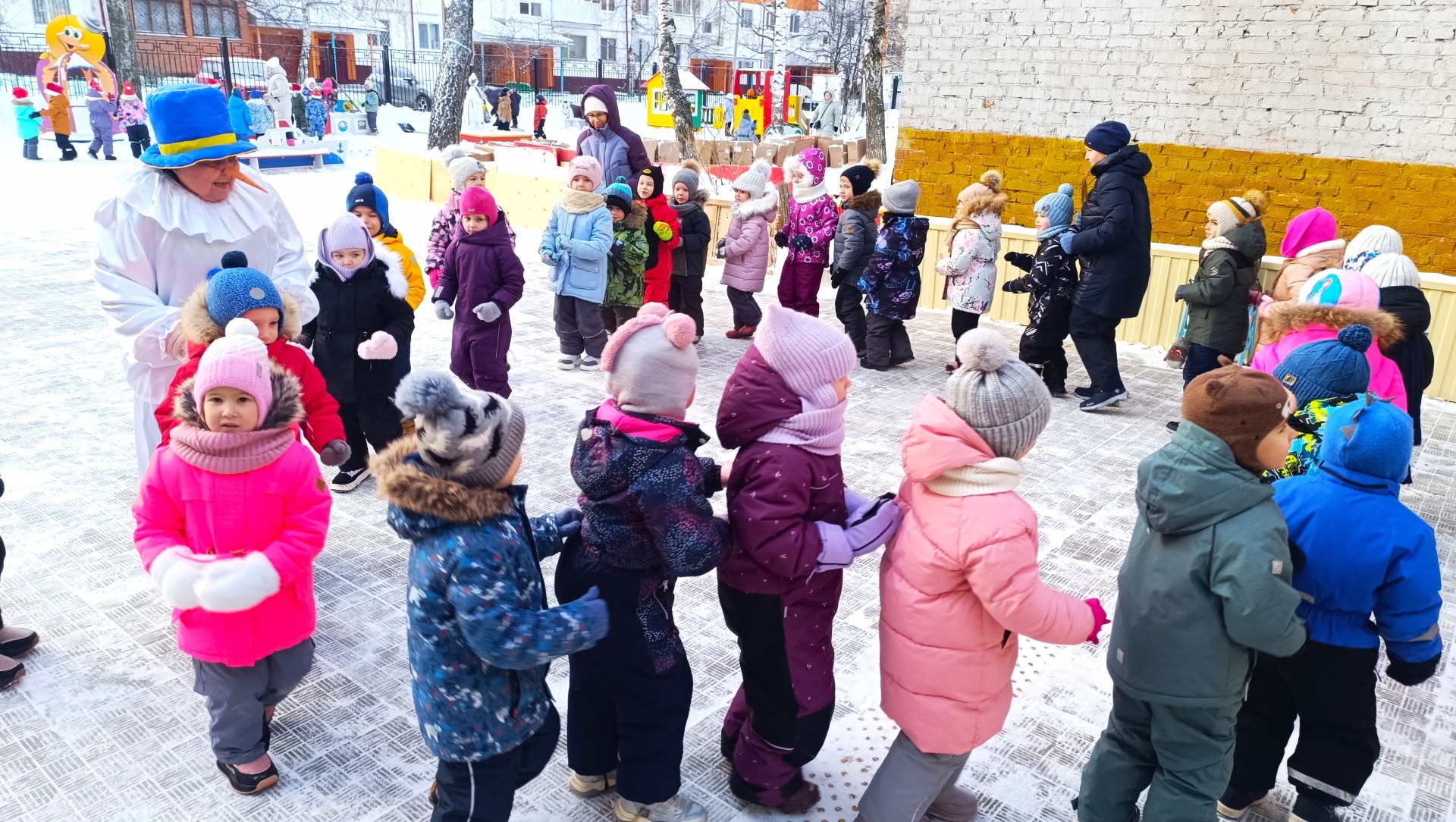 К детям в гости пришел Снеговик и предложил поиграть и повеселиться..
