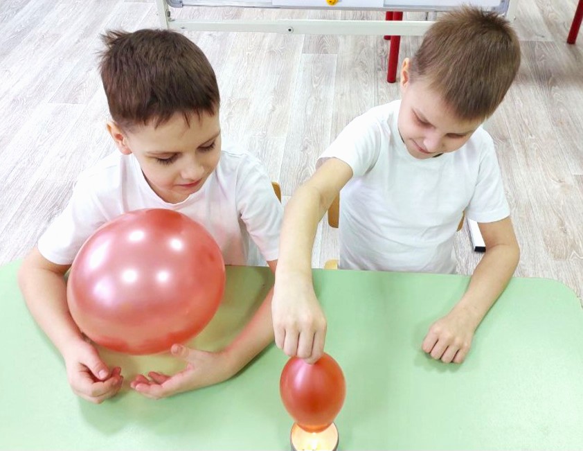 В процессе опытов и наблюдений они узнали, что вода – прекрасный растворитель, она легко принимает форму сосуда, в котором находится, меняет очертания предметов, погружённых в неё. С удивлением наблюдали, как с помощью соломинки можно переместить воду из одной ёмкости в другую, как вынуть предмет из стакана с водой, не замочив пальцы. На практике узнали что такое воздух.