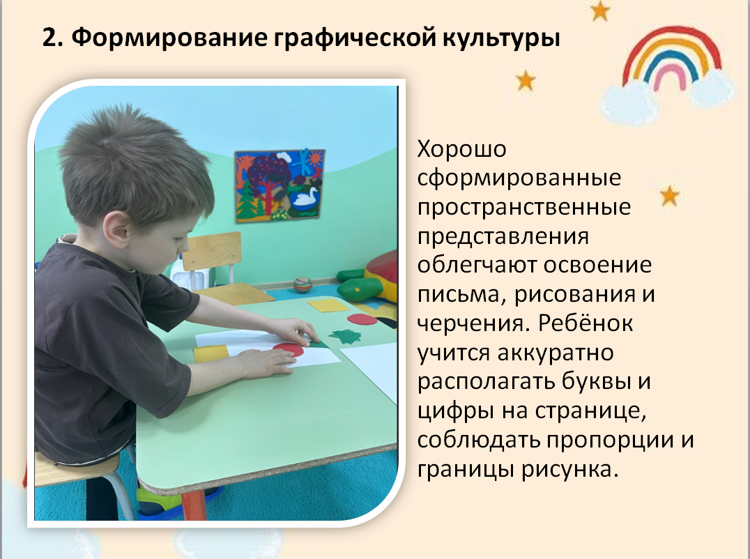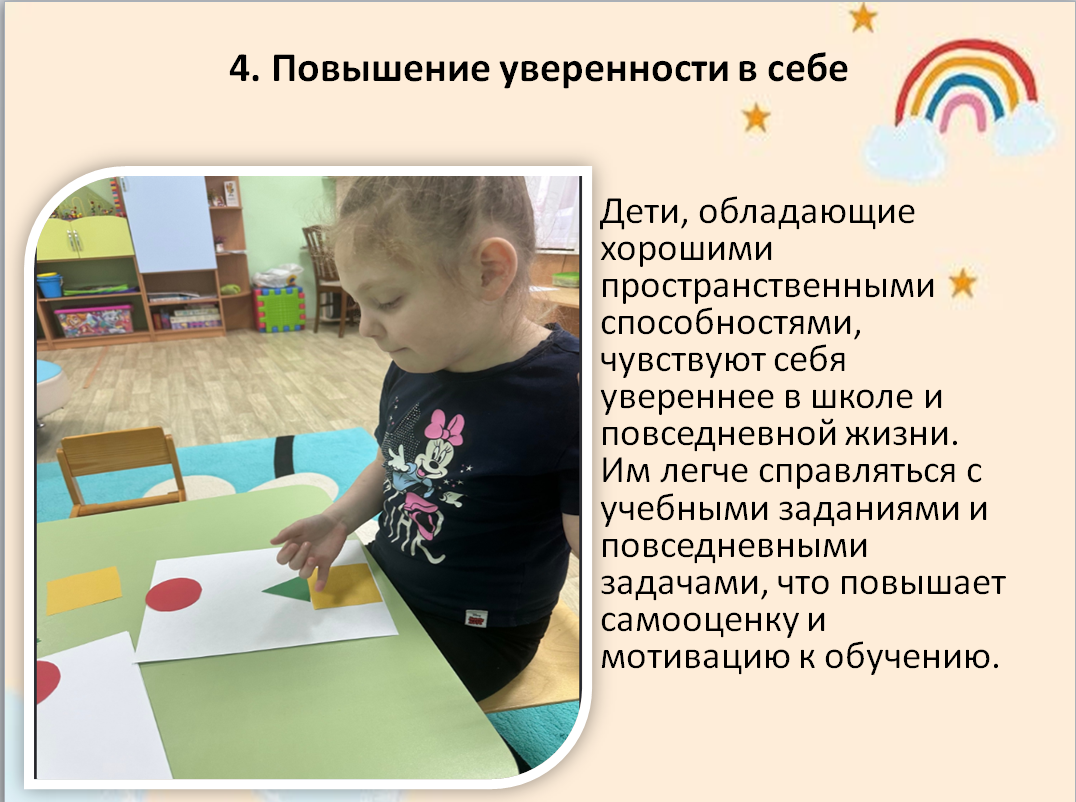 Ребята активно участвовали в выполнении заданий, размещая предложенные геометрические фигуры согласно указанным инструкциям. Мы использовали формы как: треугольник, круг, квадрат. Важно отметить, что подобная практика способствует формированию базовых представлений о пространстве, развивает зрительно-пространственный анализ и помогает детям лучше ориентироваться в окружающем мире. Автор материала: Мареич Я.А., педагог - психолог