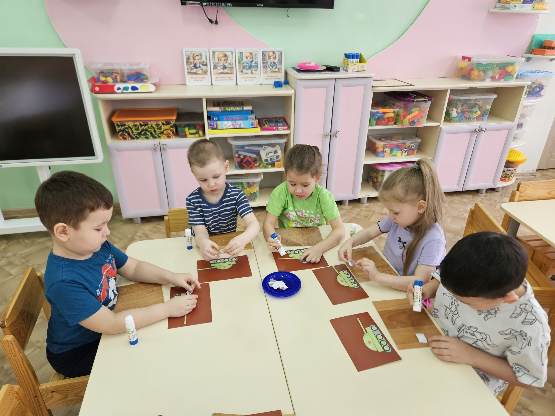 С огромным желание ребята изготовили открытки для пап. Старались наклевать детали аппликации аккуратно, не торопясь.