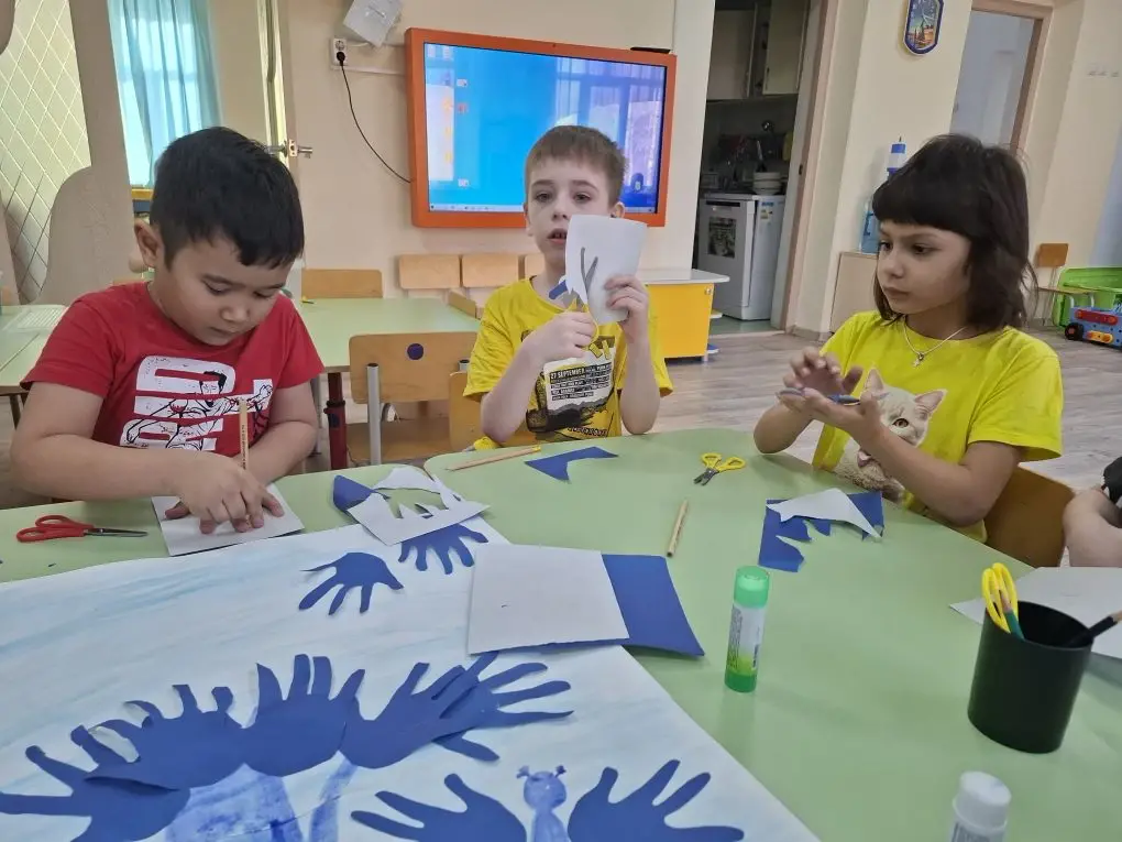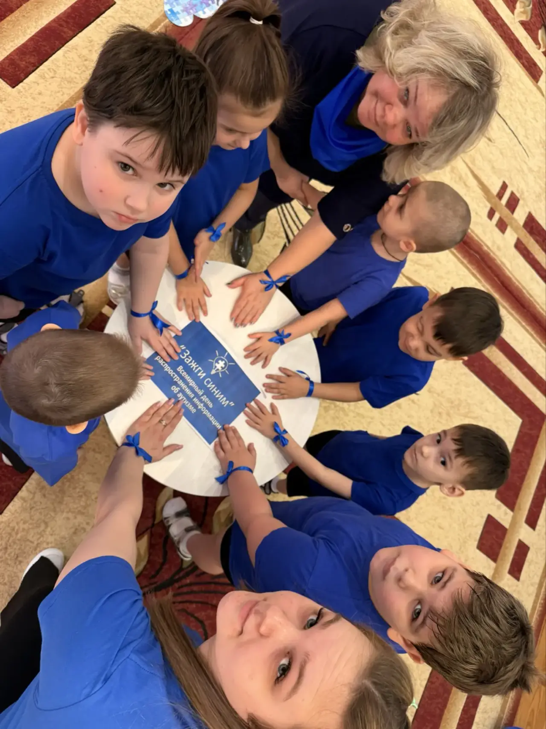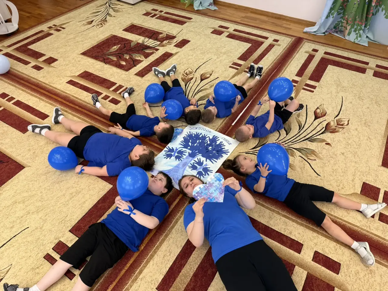 Синий цвет стал символом аутизма как цвет, символизирующий равновесие и поддержку. По статистике, аутизм встречается у мальчиков почти в 5 раз чаще, чем у девочек. Поэтому был выбран именно синий цвет. Ребята подготовительной группы «Солнышко» совместно с педагогами украшали группу синими шарами, плакатами. На занятии по художественному творчеству нарисовали «Синие цветы», выполнили аппликацию, вырезали синие сердечки и ладошки в знак поддержки, доброжелательности и взаимопомощи особенным детям.