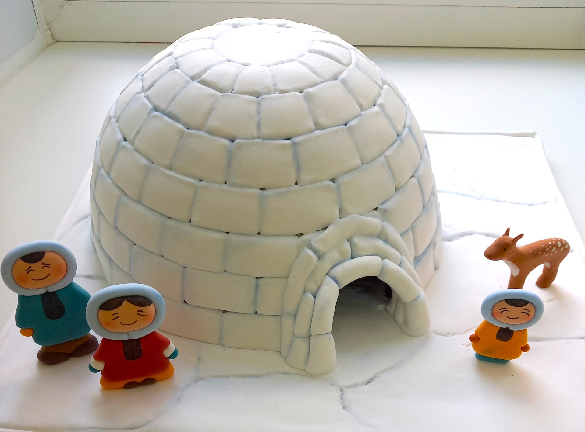 -иглу из сахара-рафинада, воздушного пластилина, ваты.