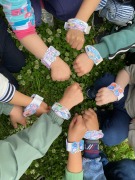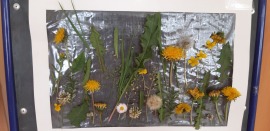 Летняя мастерская, воспитанники создают картины из живых цветов.