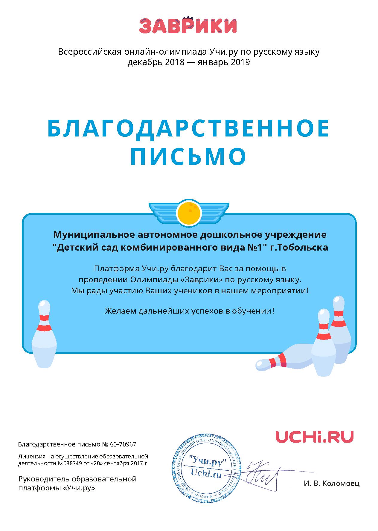 "Детский сад комбинированного вида № 1" г.Тобольска